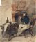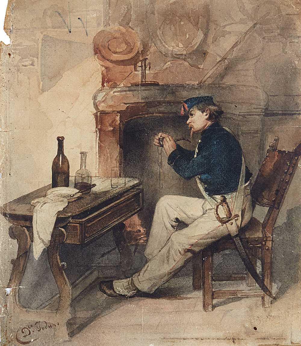 Domenico Induno (Milano 1815 - 1878)"La pipa"acquerello su carta (cm...