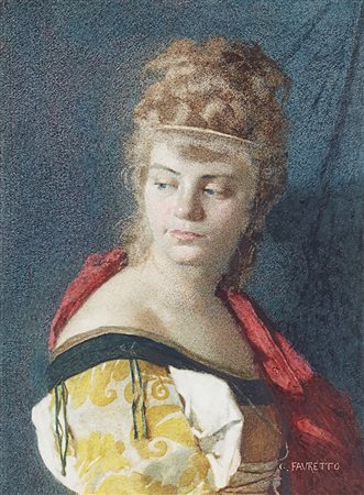 Maestro veneziano del XIX Secolo"Ritratto femminile"tecnica mista su carta...