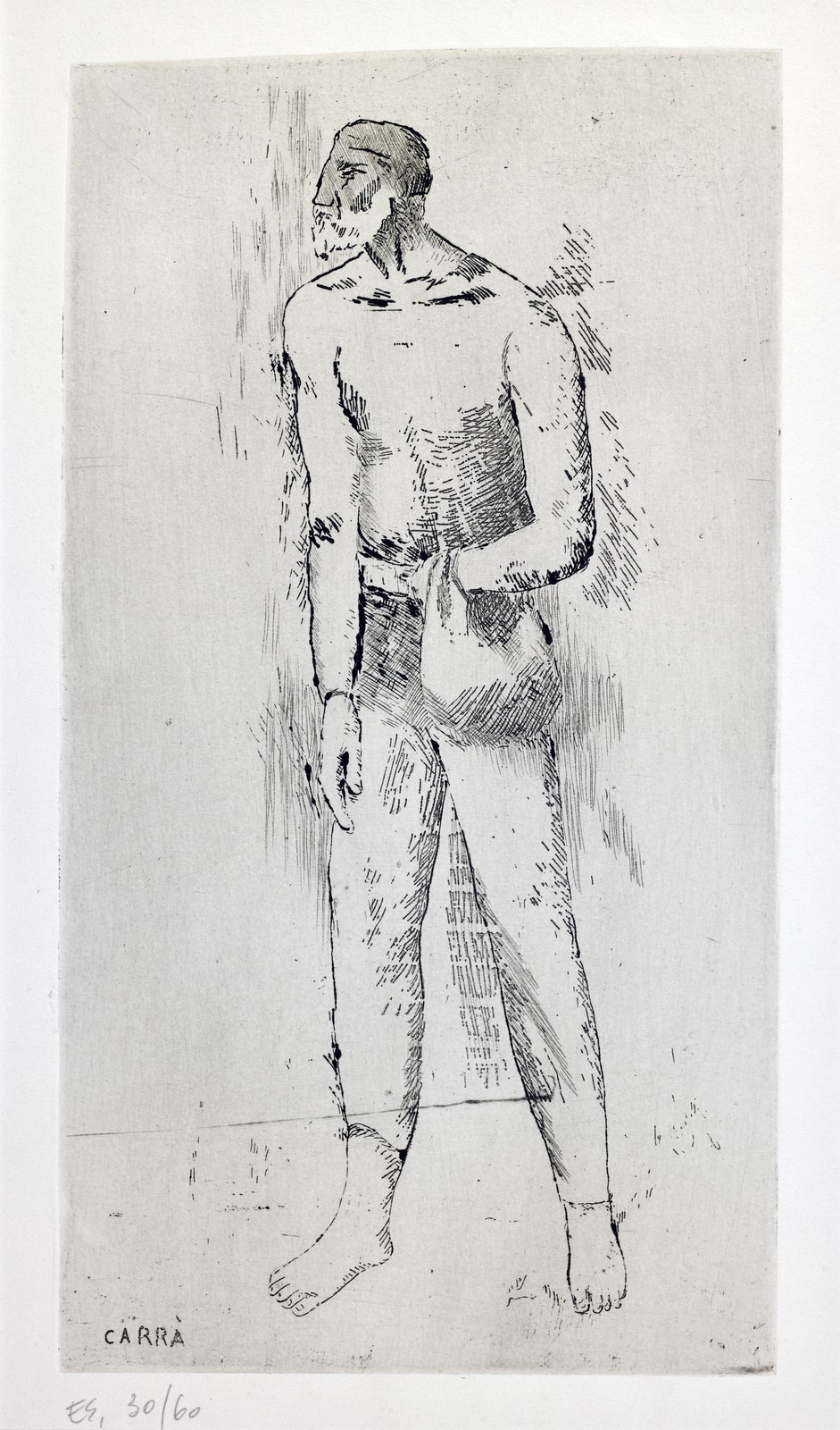 CARRA' CARLO (1881 - 1966) The wanderer. Etching. Cm 20,00 x 34,00. 30/60. Edition lower left in penci; signature lower left in plate. DL Arte, Milan authenticity certificate on photo. Plate size: 30.5x17 cm. Cornice presente