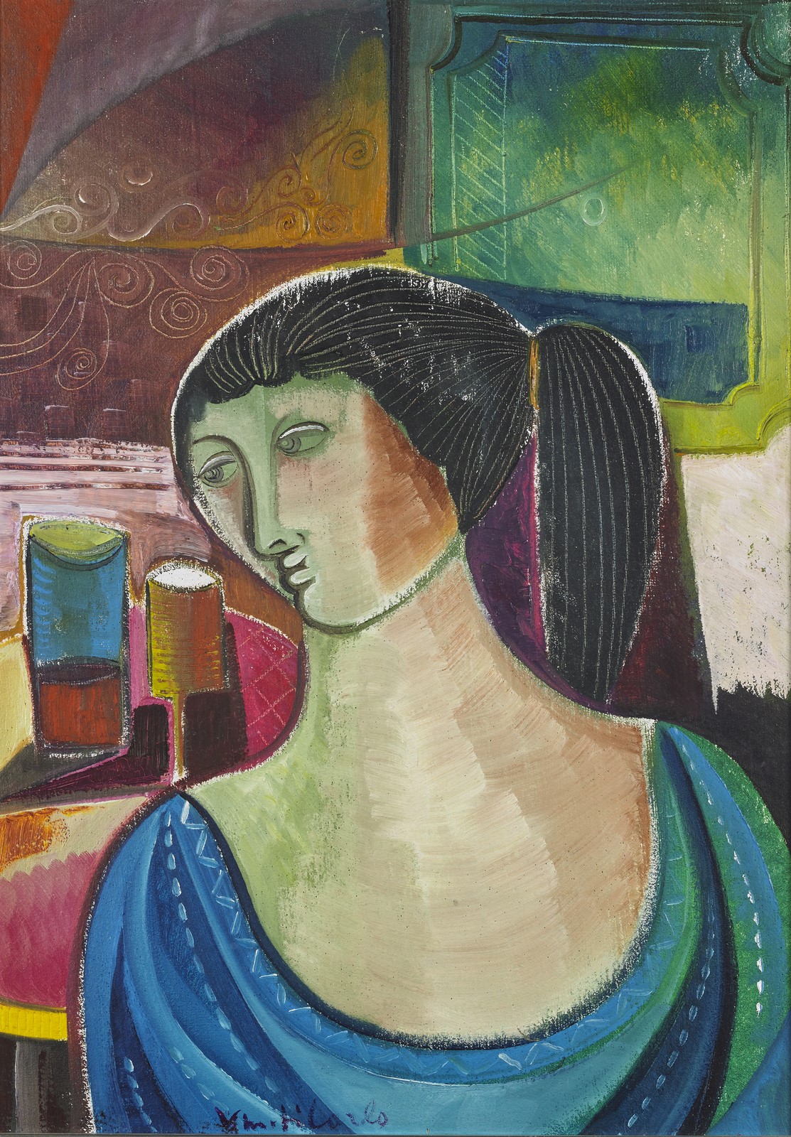 DI CARLO VITTORIO MARIA (n. 1937) Figura. . Olio su tela . Cm 50,00 x 70,00. Firma in basso a sinistra e al retro. Cornice presente