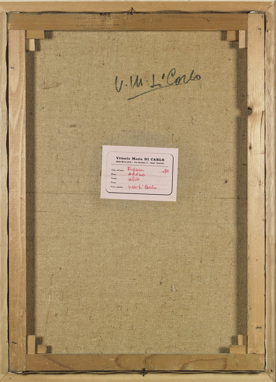 DI CARLO VITTORIO MARIA (n. 1937) Figure. Oil on canvas . Cm 50,00 x 70,00. Signature lower left and at the back. Cornice presente