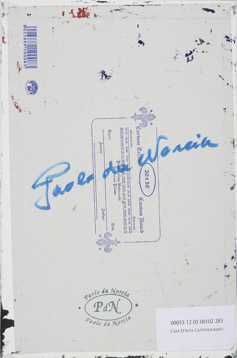 DA NORCIA PAOLO (n. 1953) Senza titolo. Olio su cartone telato. Cm 30x20. Autentica dell'artista su fotografia. Al retro firma e timbro dell'artista. Firma in basso a destra.