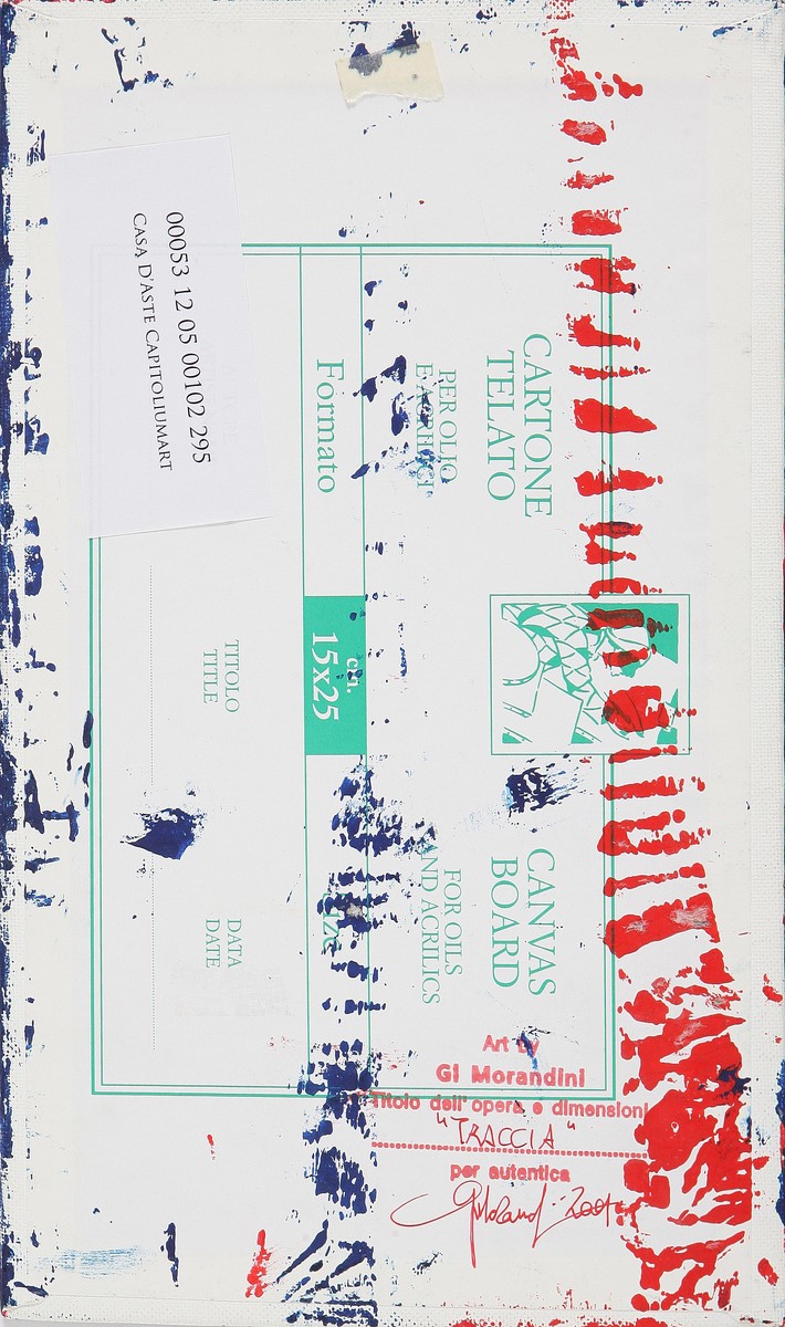 MORANDINI GI (n. 1951) Traccia. 2001. Olio su cartone telato. Cm 18x24. Al retro firma per autentica e anno. Firma e data al centro.