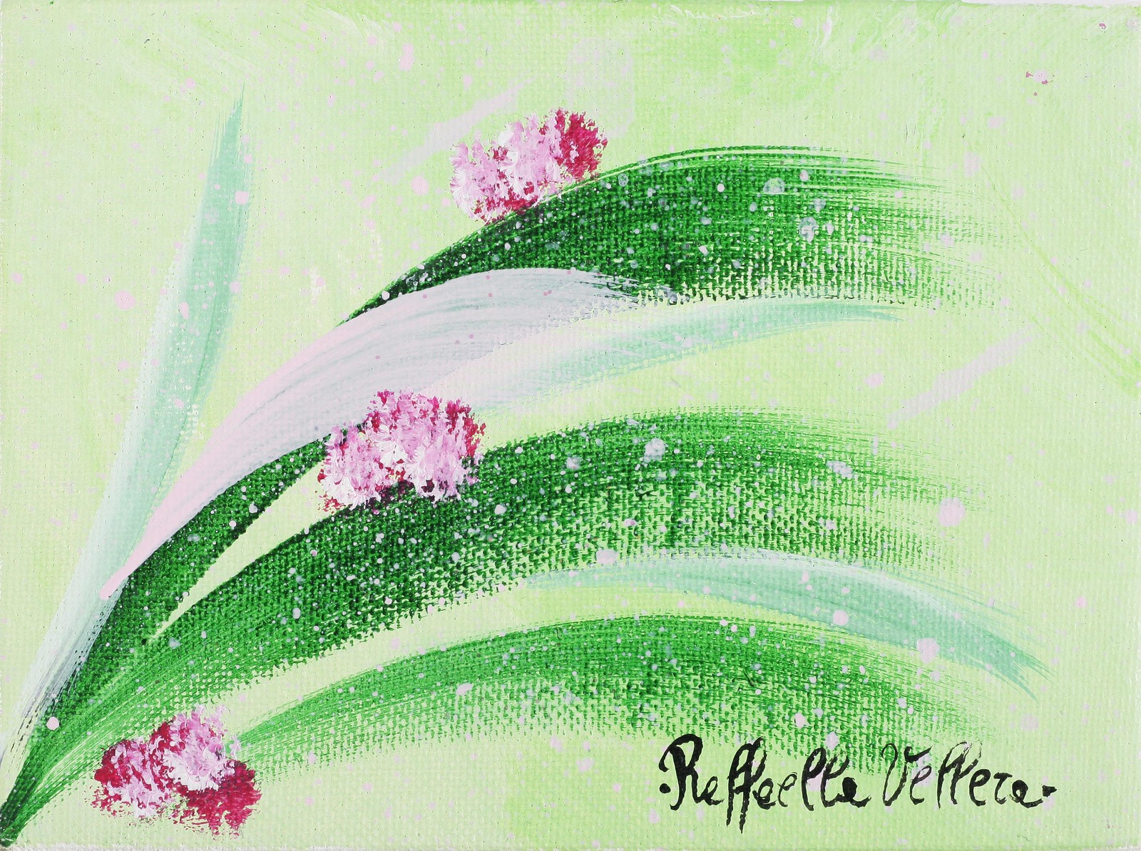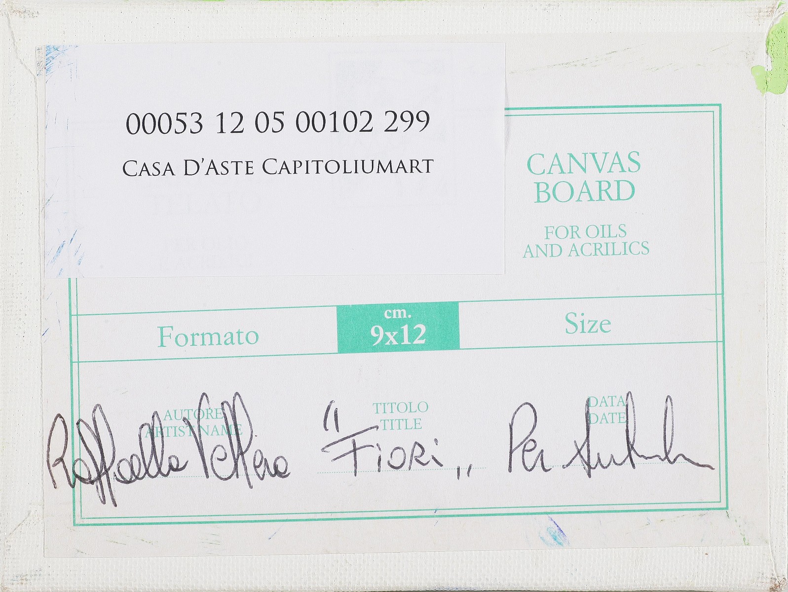 VELLERA RAFFAELLA (n. 1975) Fiori. Olio su cartone telato. Cm 12x9. Al retro firma per autentica. Firma in basso a destra.