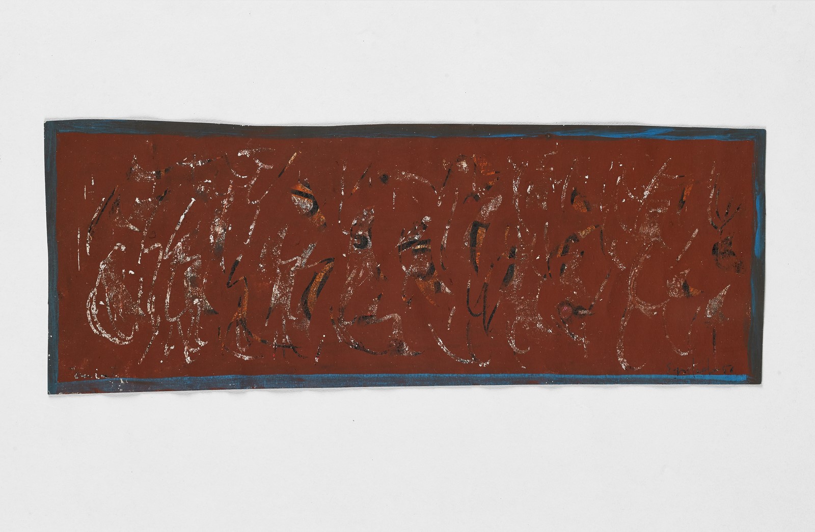 DANGELO SERGIO (n. 1932) Ombre. 1956. Tempera su carta. Cm 33,00 x 11,00. Titolo, firma e anno in basso.Provenienza: Galleria Sforzini Arte. Cornice presente