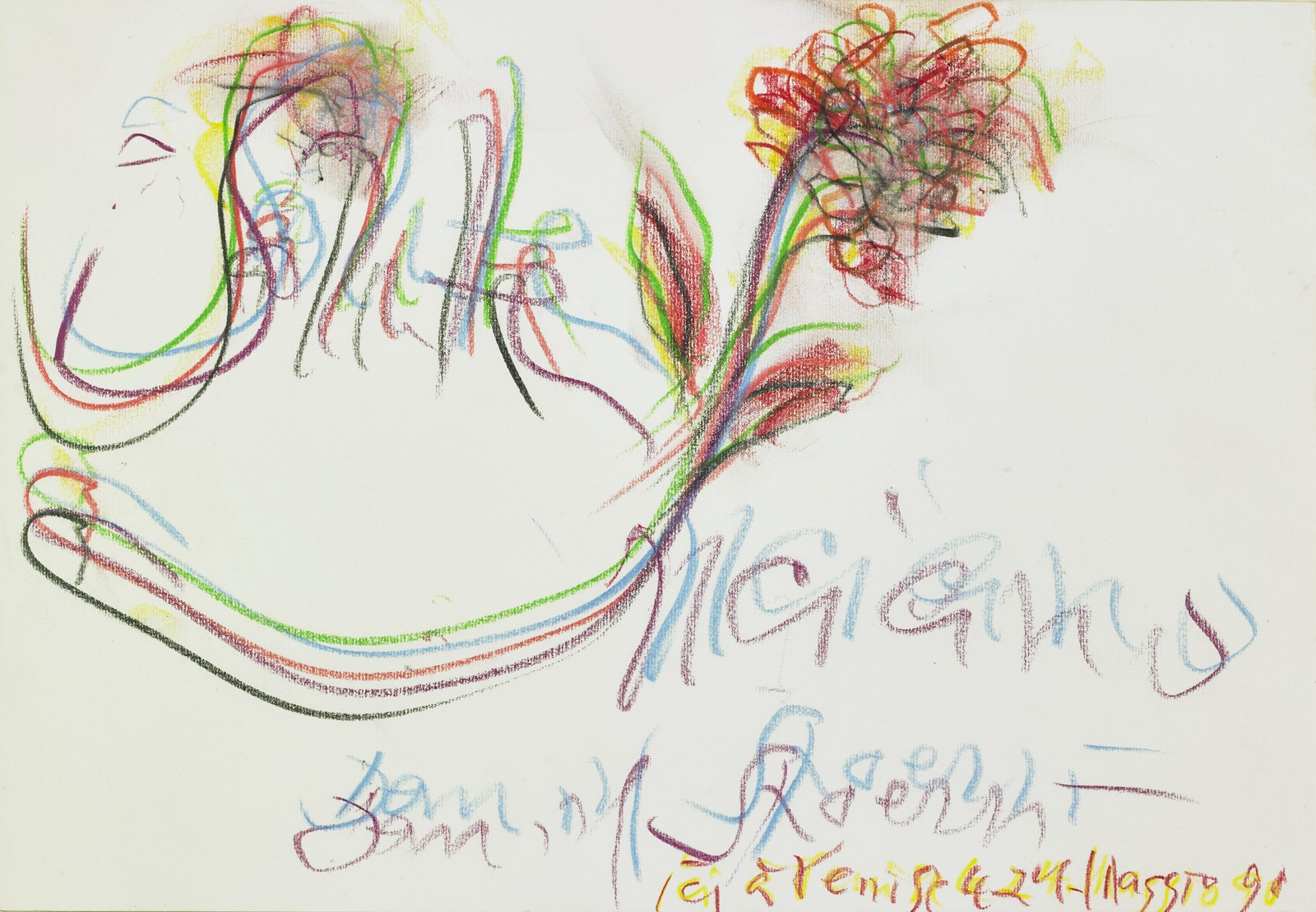 SPOERRI DANIEL (n. 1930) Biennale de Venise - Il cigno. 1990. Pastels on paper. Cm 36,00 x 25,00. Title, signature and year lower right. Provenance: Cattellani Collection. Bugno Collection. Cornice presente