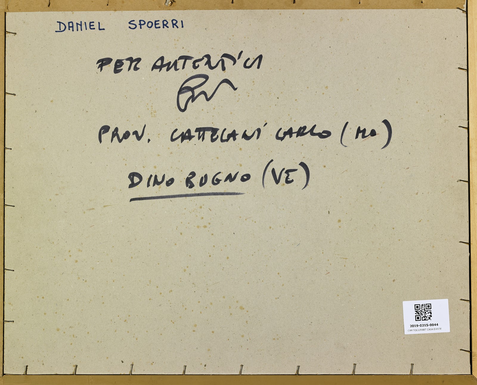 SPOERRI DANIEL (n. 1930) Biennale de Venise - Il cigno. 1990. Pastelli su carta. Cm 36,00 x 25,00. Titolo, firma e anno in basso a destra. Provenienza: Collezione Cattellani (Mo); Collezione Dino Bugno (Ve). Cornice presente