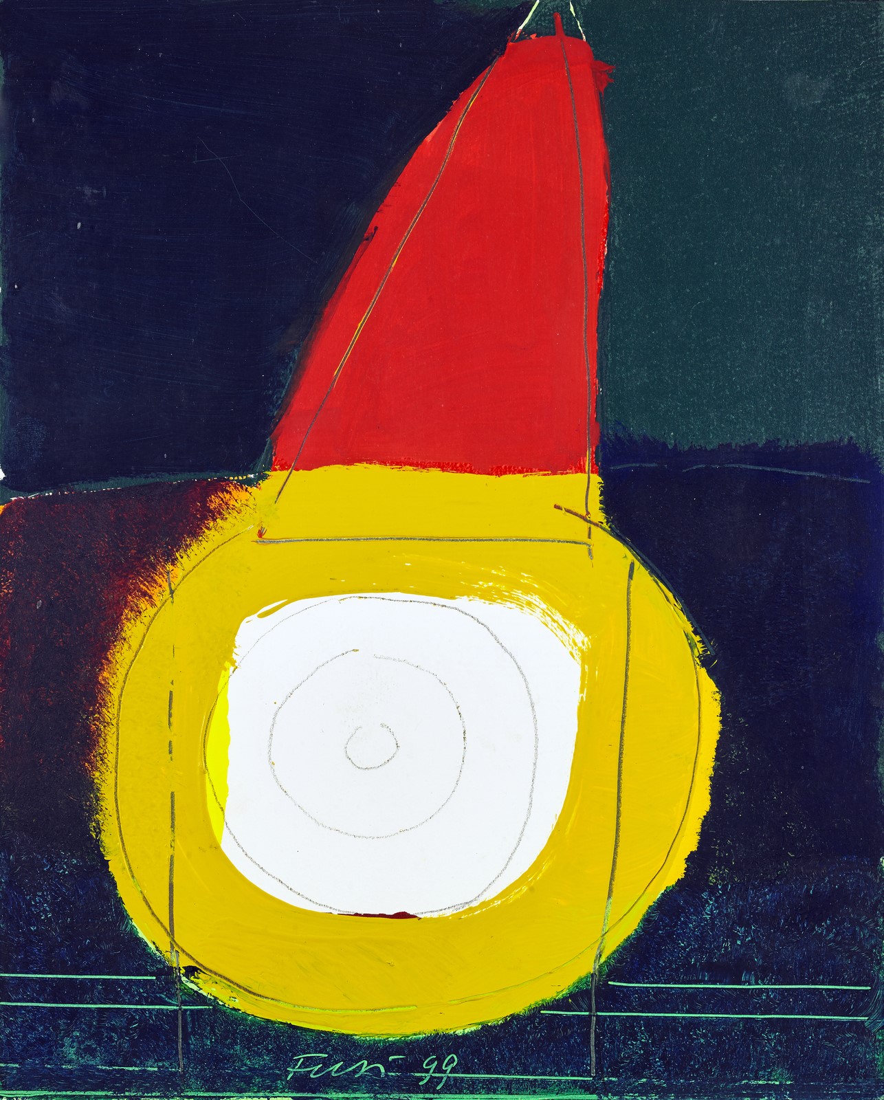 FUSI WALTER (n. 1924) Senza titolo. 1999. Tecnica mista su cartone. Cm 28,00 x 35,50. Firma e anno in basso al centro. Autentica dell'artista su fotografia.