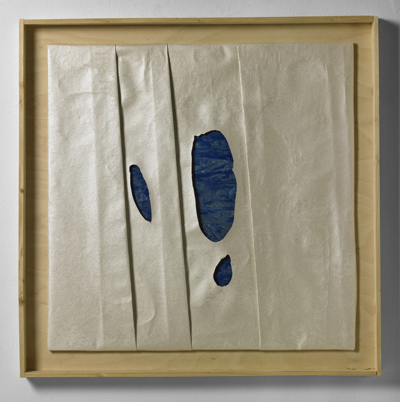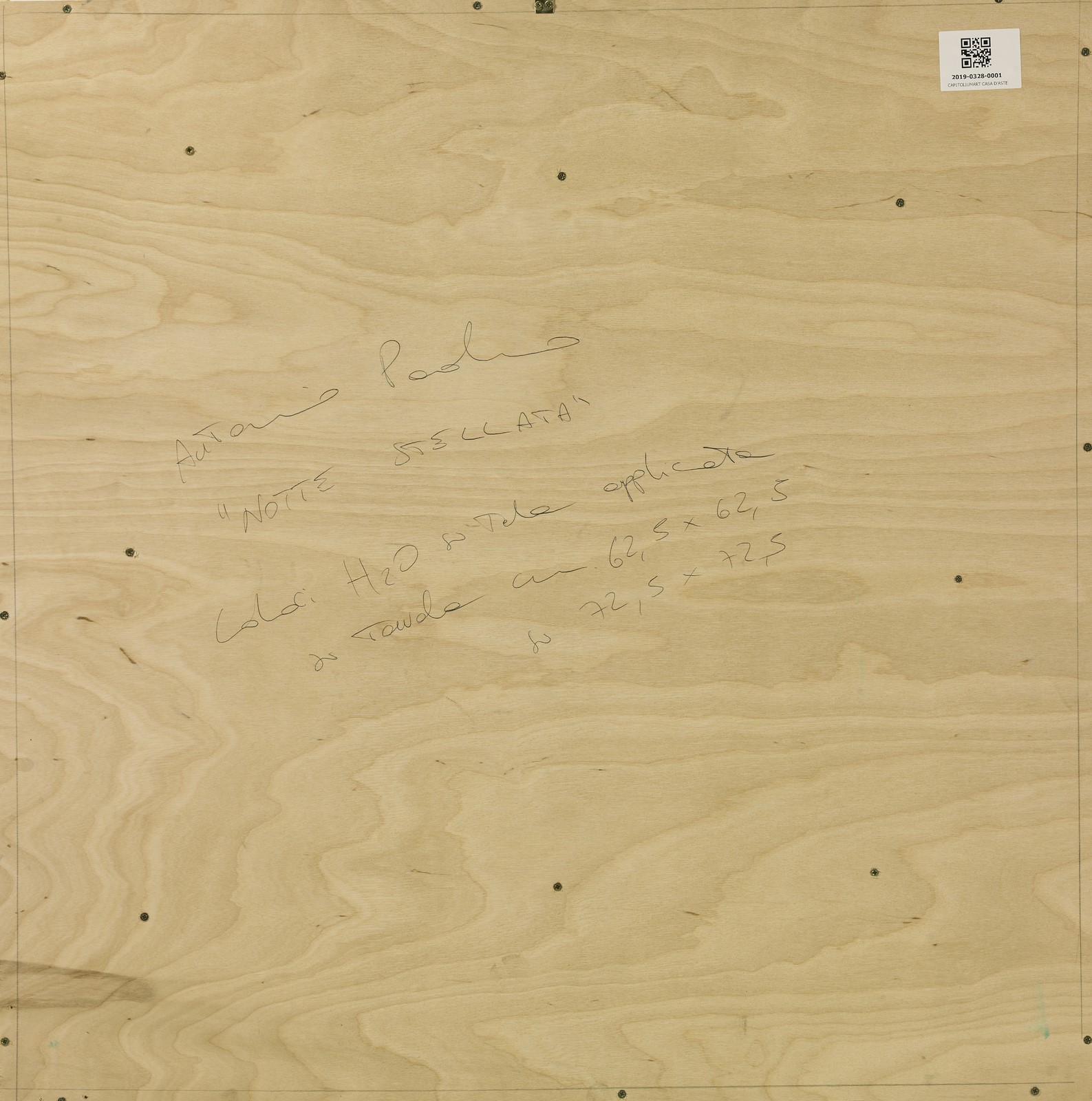 PAOLINO ANTONIO Notte stellata. Tecnica mista su tela su tavola. Cm 72,50 x 72,50. Al retro titolo e firma. Cornice presente