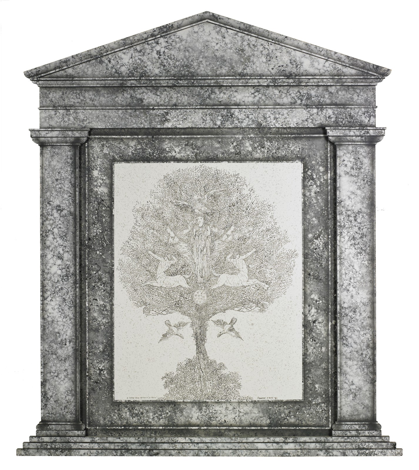 DE FILIPPI FERNANDO (n. 1940) Magic. 1986. Mixed media on canvas. Cm 148,00 x 170,00 x 2,00. Shaped wooden frame. Title, signature and year lower.