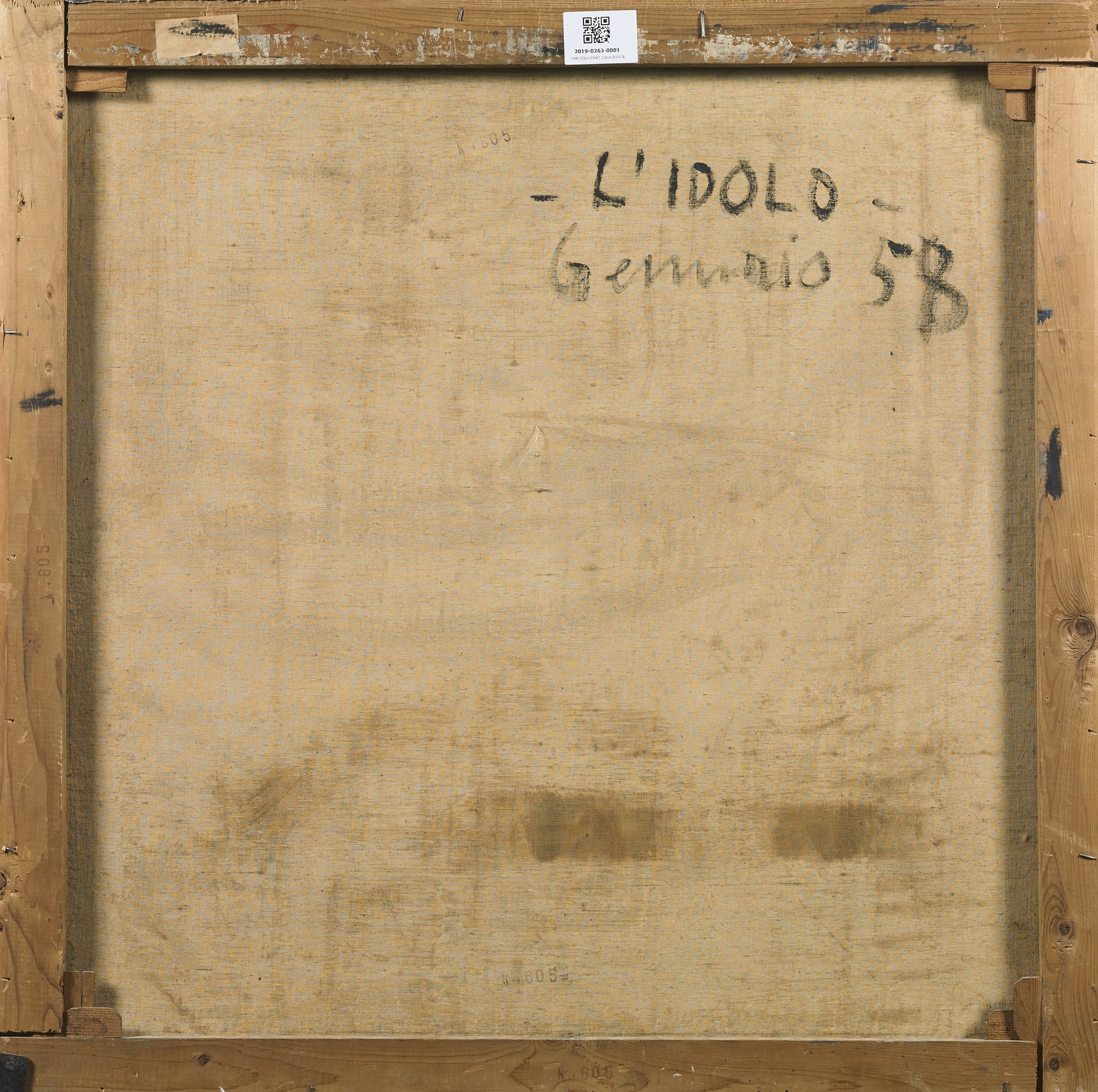 FERRONI GIANFRANCO (1927 - 2001) Idol. 1958. Oil on canvas . Cm 80,00 x 80,00. Signature and year lower right. At the back title and year.