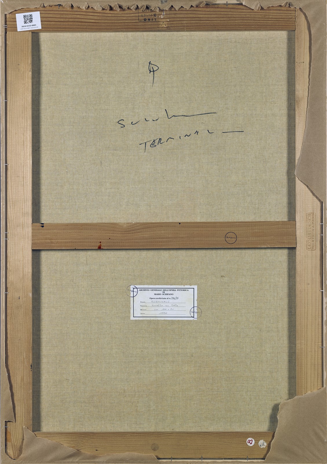 SCHIFANO MARIO (1934 - 1998) Terminal. 1996. Enamel on canvas. Cm 100,00 x 70,00. At the back title, signature and Mario Schifano gneral archive label. Artist's authenticity certificate on photo. Telemarket authenticity certificate.
