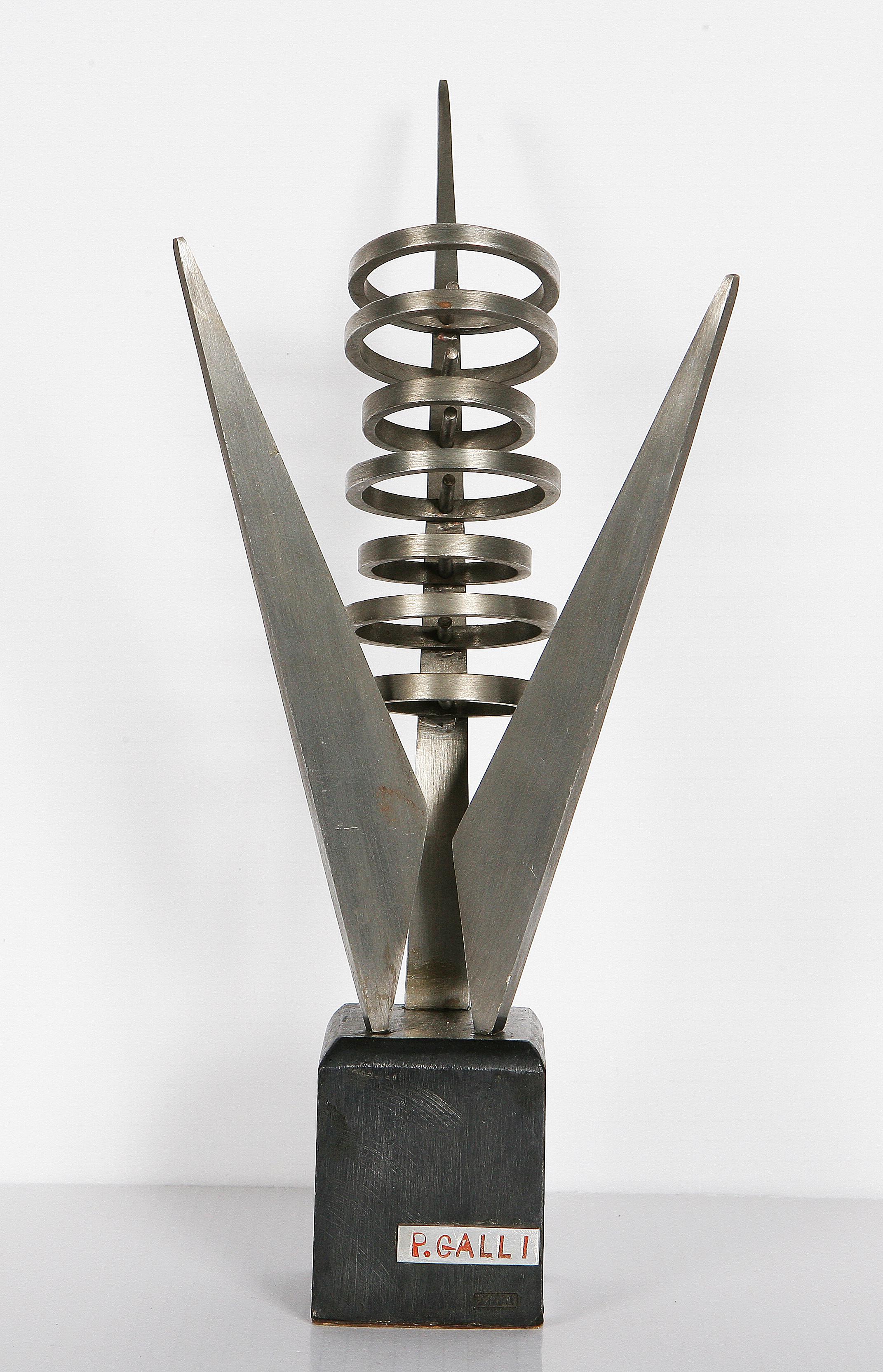 GALLI P. Senza titolo. Scultura in ferro. Cm 15x35x16. Firma sul piedistallo.