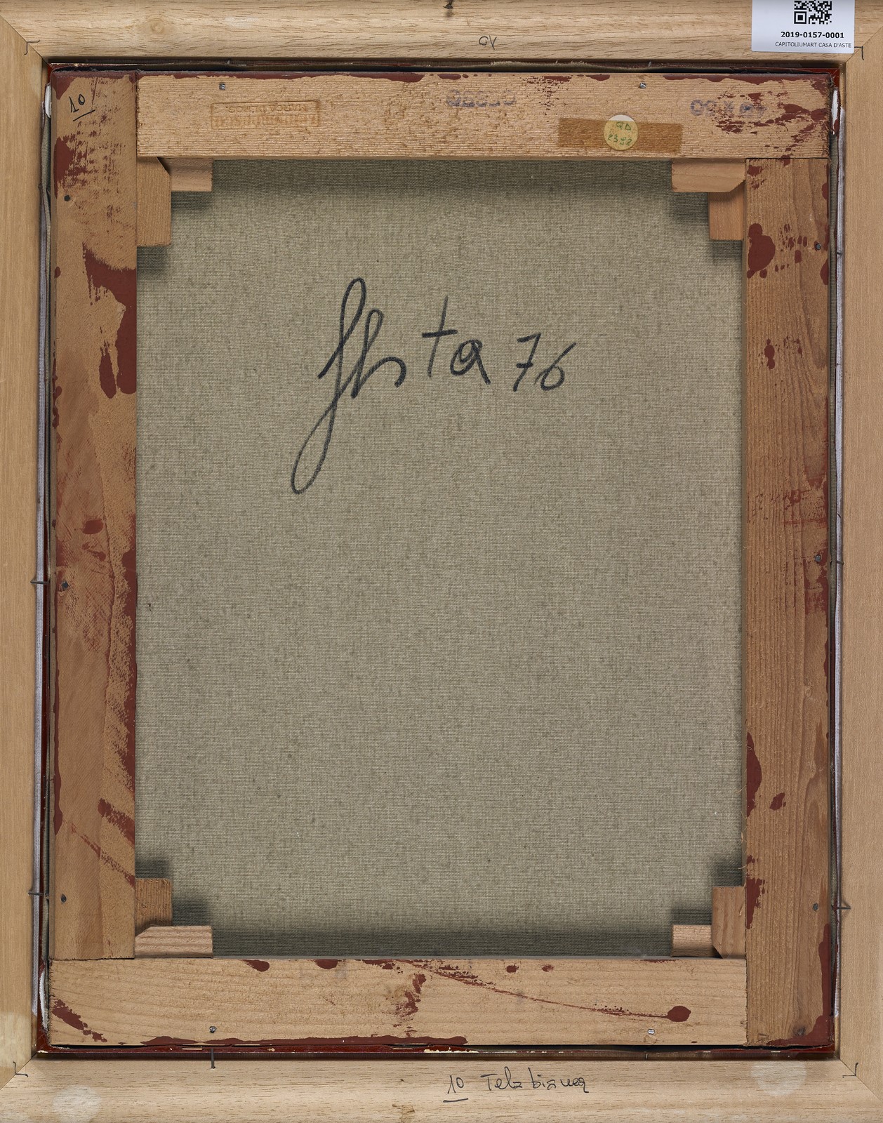 FESTA TANO (1938 - 1988) From Michelangelo. 1976. Oil on canvas . Cm 40,00 x 50,00. At the back signature and year. Studio Soligo, Rome, authenticity certificate on photo. Cornice presente