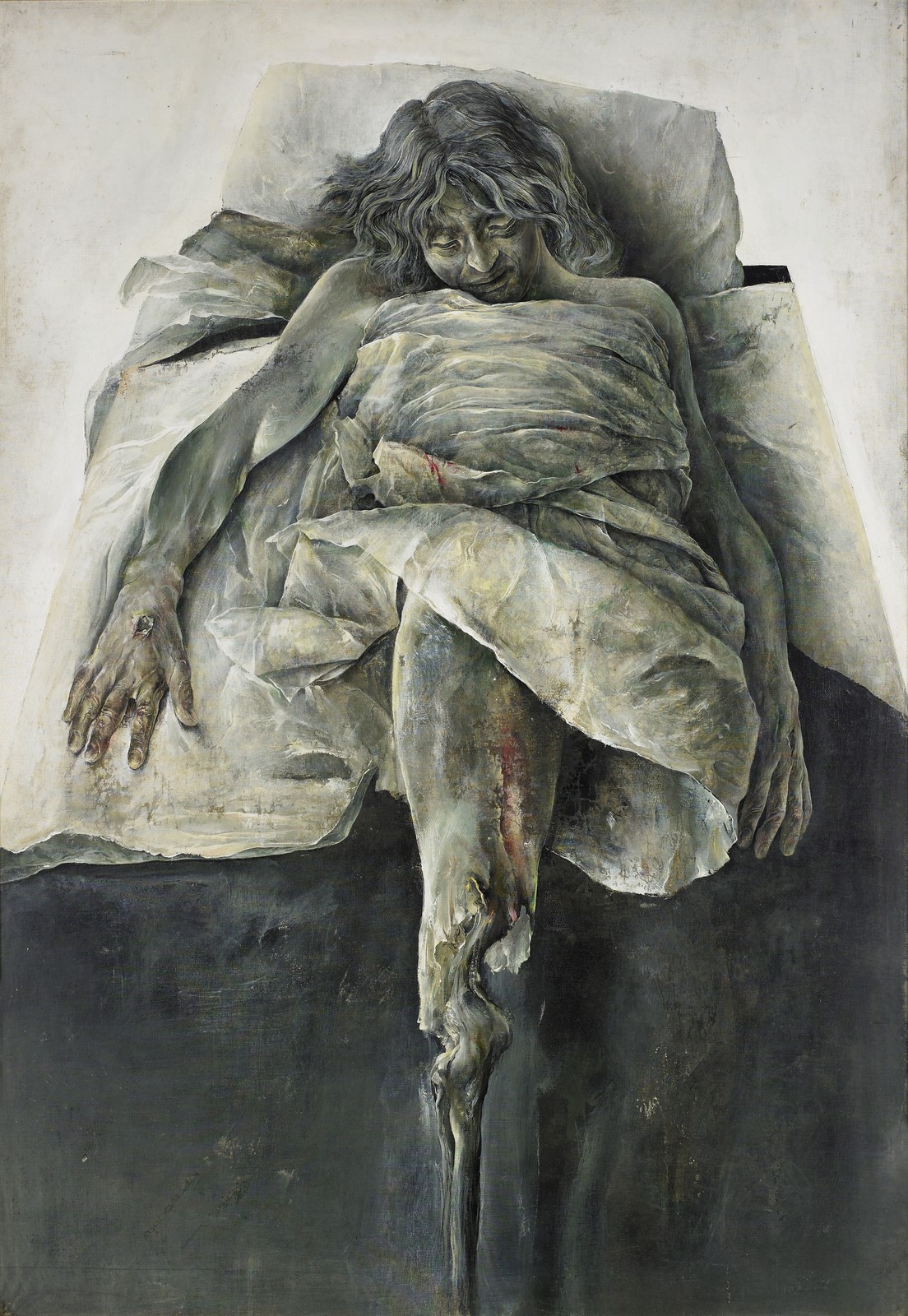 VITALI VELASCO (n. 1960) Dead Christ. 1985. Acrylic on canvas. Cm 103,50 x 148,50. Signature at the back. Artist's authenticity certificate on photo. Publication: Gran Milan (journal), January 1989. Provenance: Giovanni Testori Collection, Milan; Bellinzona Gallery, Lecco; Private colelction, Ferrara. Cornice presente