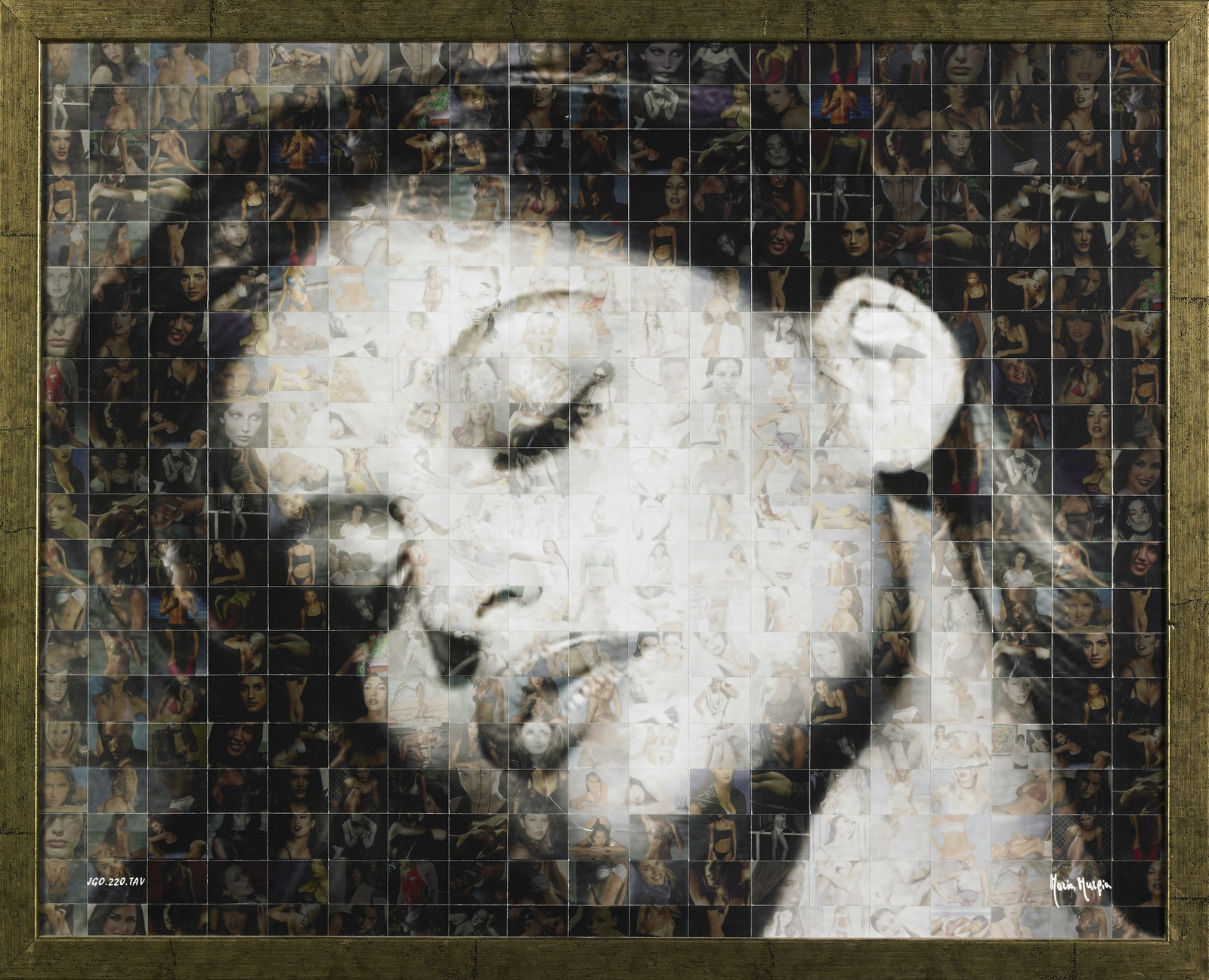 MURGIA MARIA (n. 1935) Tribute to Laetitia Casta. 2009. Digital photomosaic. Cm 50,00 x 40,00. Signature lower right. Maria Murgia Archive's authenticity certificate on photo.. Cornice presente