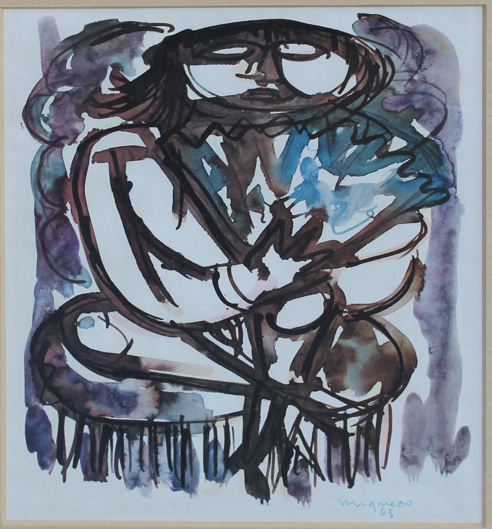 Giuseppe Migneco, Senza titolo 1963 Acquerello su carta, 28cm x 22cm. Autentica su foto dell'artista