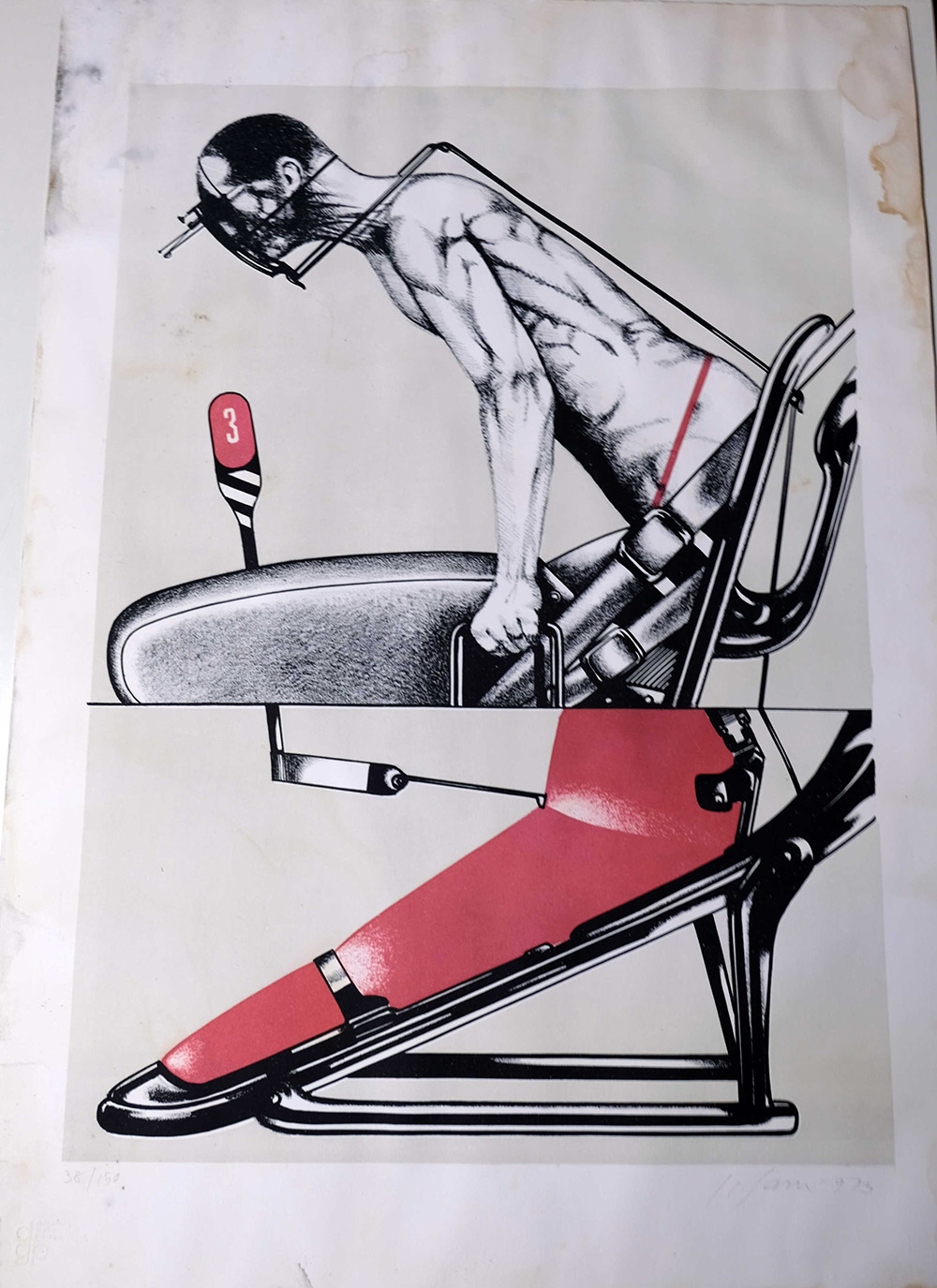 Sergio Sarri, Figura e attrezzo 1973 Litografia n.38/150, 57cm x 40cm. Firmato fronte opera