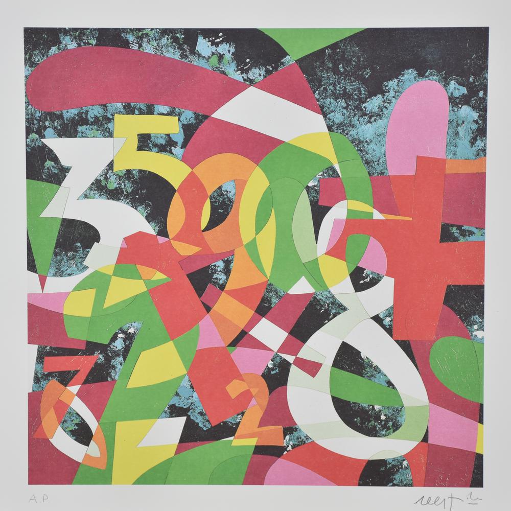 Ugo Nespolo Senza titolo litografia su carta, cm 48x48 esemplare prova d'autore sul fronte: firma