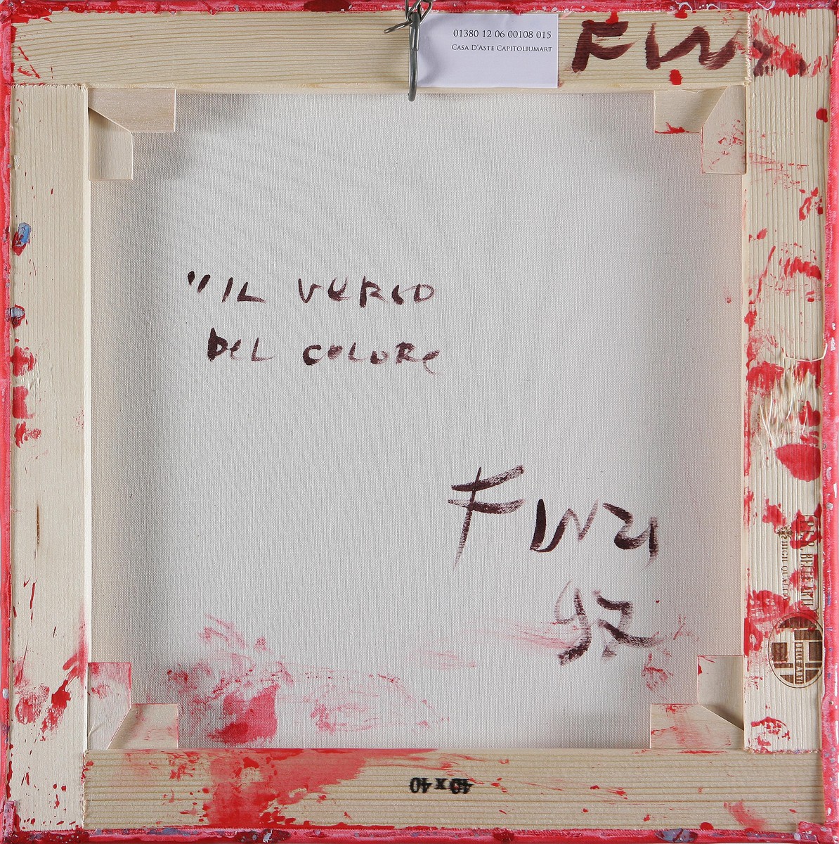 FINZI ENNIO (n. 1931) Il verso del colore. 1997. Olio su tela. Cm 40x40. Autentica su fotografia dell'artista.