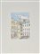 Orfeo Tamburi ANGOLO PARIGINO incisione su carta, cm 59,5x44,6 (lastra cm 29,4x21,3) esemplare colorato a mano sul fronte: firma L'opera presenta tracce di sporco in basso a destra