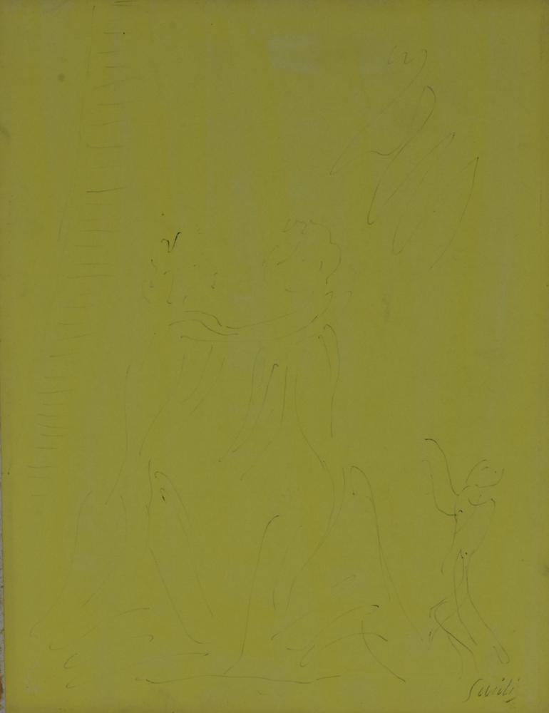 Virgilio Guidi SENZA TITOLO disegno su carta applicata su tela, cm 31,3x23,5 sul fronte: firma