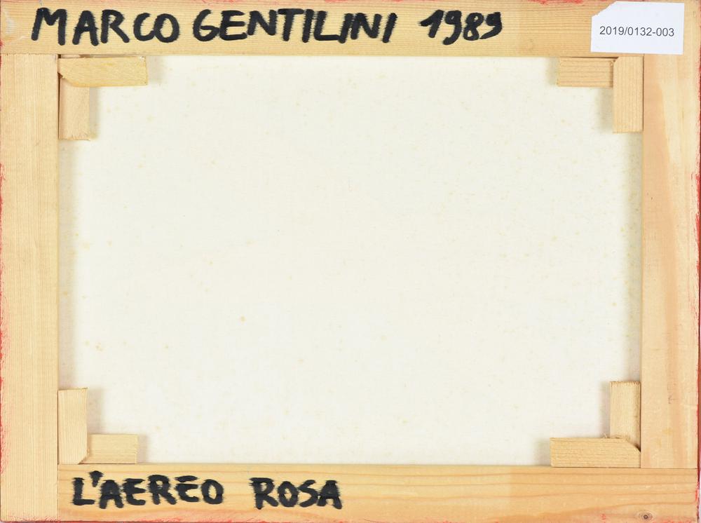 Marco Gentilini L'AEREO ROSA acrilico, pennarello e marker su tela, cm 30x40 sul fronte: firma e data sul retro: firma, titolo e data eseguito nel 1989