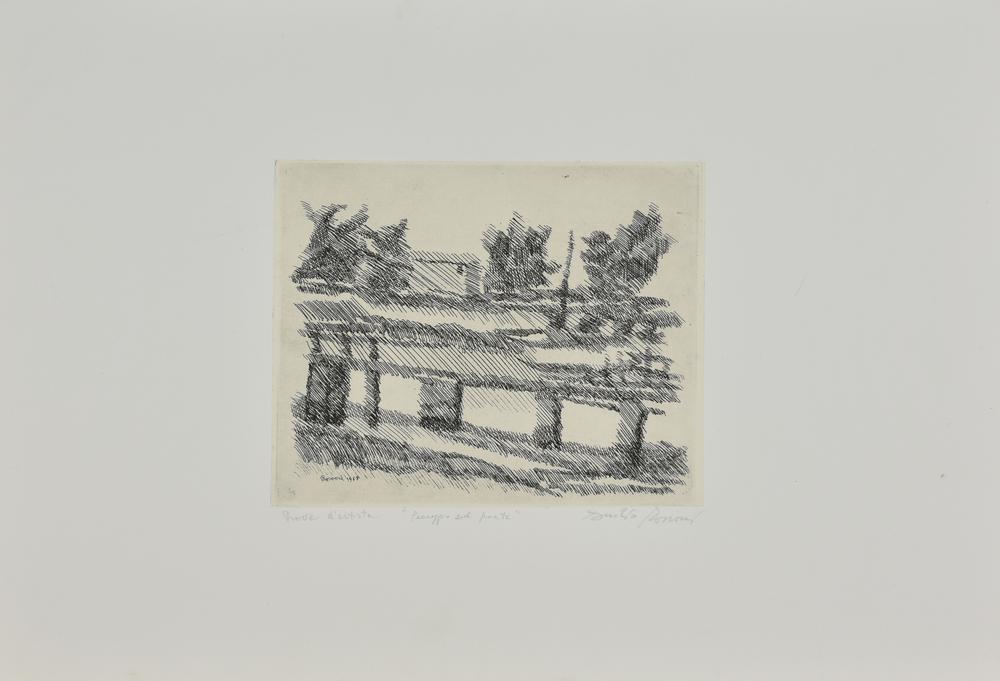 Duilio Rossoni PAESAGGIO incisione, foglio cm 35x50 firmato e titolato esemplare p.d.s. PAESAGGIO DAL PONTE incisione, foglio cm 35x50 firmato, titolato e datato esemplare p.d.a. eseguito nel 1968