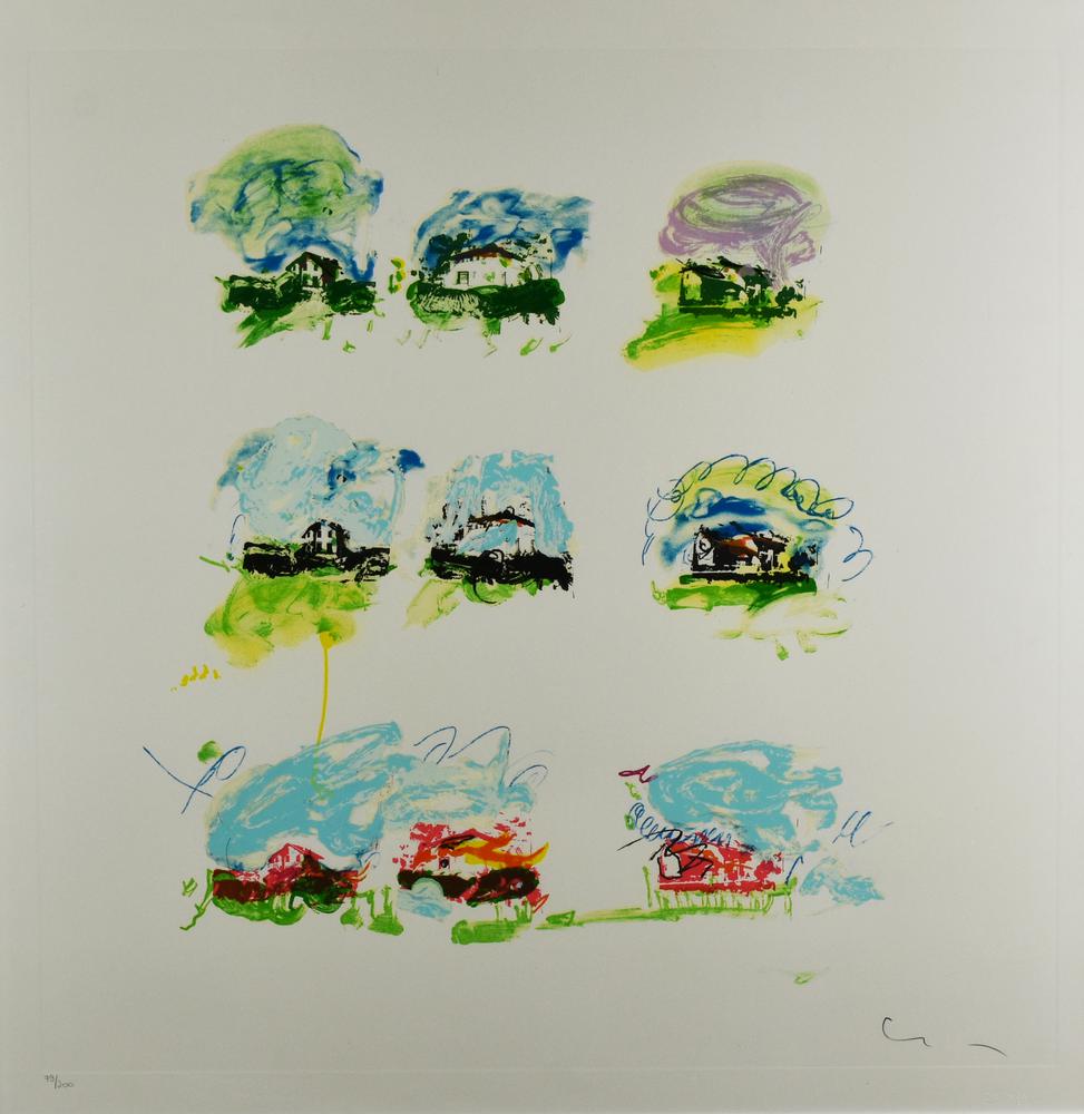 Mario Schifano SENZA TITOLO litoserigrafia, cm 70x70 esemplare 79/200 sul fronte: firma