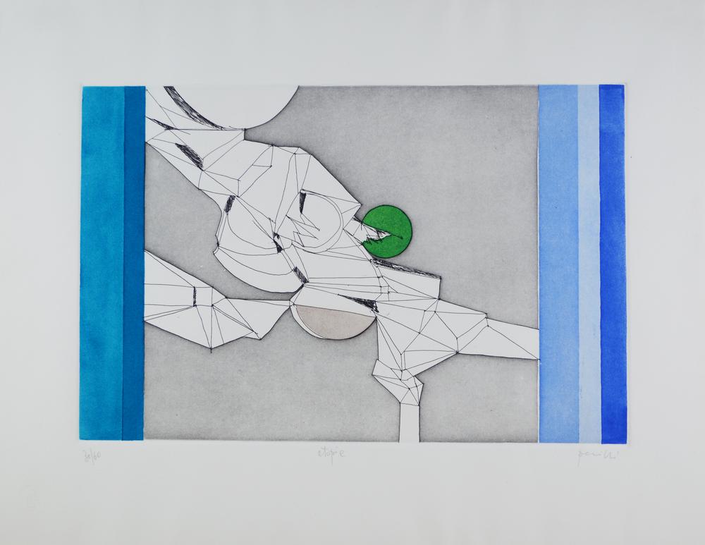 Achille Perilli ETOPIA acquaforte acquatinta, foglio cm 49x54, battuta cm 32x48; es. 30/60 firmato, titolato e numerato