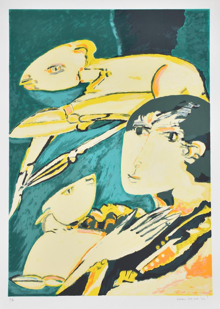 Remo Brindisi Senza titolo litografia su carta, cm 70x50 esemplare prova d'autore sul fronte: firma