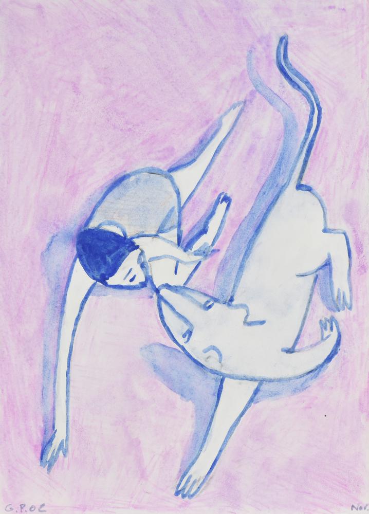 Giacomo Piussi FIGURA FEMMINILE E ANIMALE acquerello e matita su carta, cm 35x25 siglato e datato eseguito nel 2002