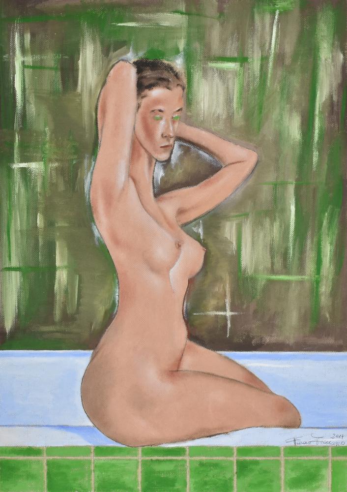 Francesco Fasano BAGNANTE olio su cartoncino telato, cm 42x30 sul fronte: firma e data sul retro: firma, titolo e data eseguito nel 2017 l'opera è accompagnata da autentica su fotografia