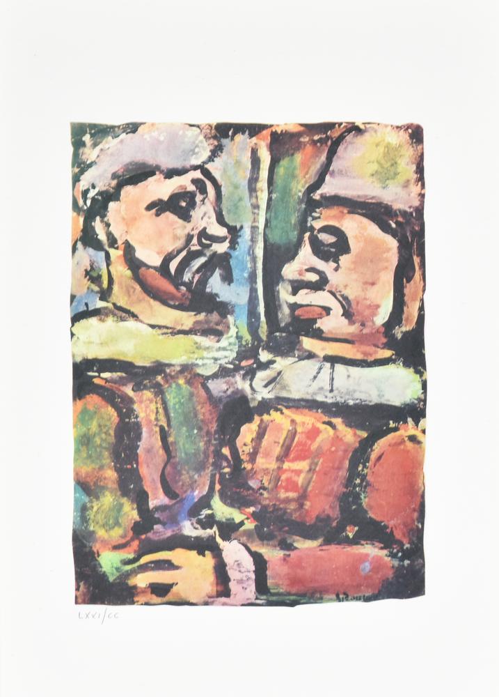 Georges Rouault Figure del Circo, 1943 litografia su carta, cm 50x35 esemplare LXXI/CC sul fronte: firmata in lastra sul retro: etichetta con timbro dello Studio d'Arte Perna di Milano