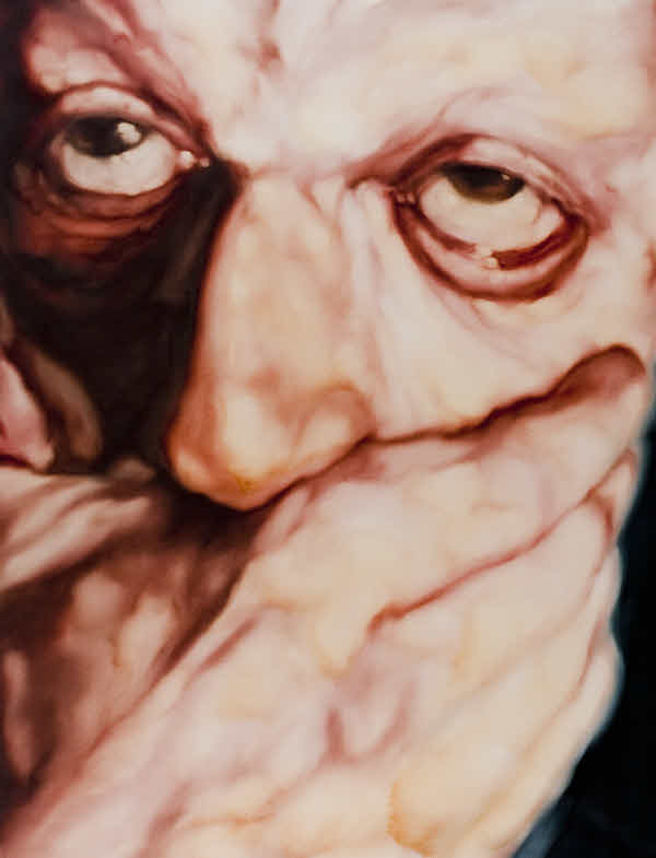 Alessandro Bellucco - Lamentazioni - 2002 olio su tela cm. 130x100. Opera esposta e pubblicata nel cat. “Lamentazioni” a cura di Aldo Busi, con Federico Guida, Fondazione Mudima, Milano; opera esposta e pubblicata nella mostra “Contemporary Portrait” a cura di Mimmo di Marzio e Enzo Santese, Torre Medievale di Moggio Udinese (UD). Firma sul retro