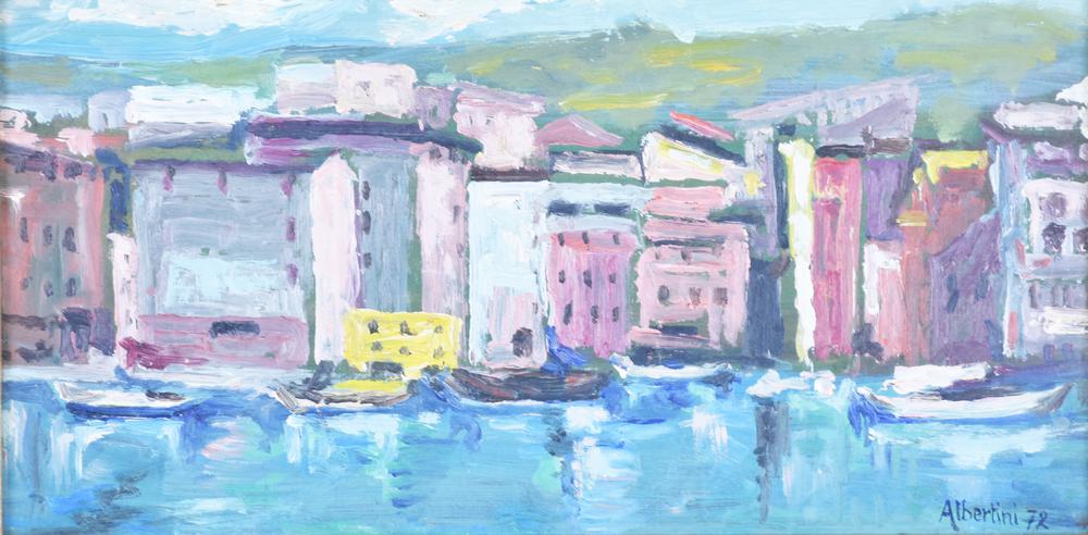 Laura Albertini CAMOGLI olio su masonite, cm 20x40 sul fronte: firma e data sul retro: firma e titolo eseguito nel 1972
