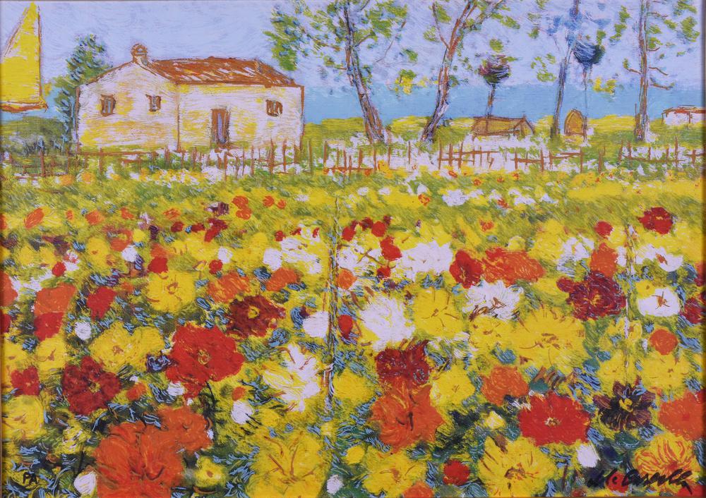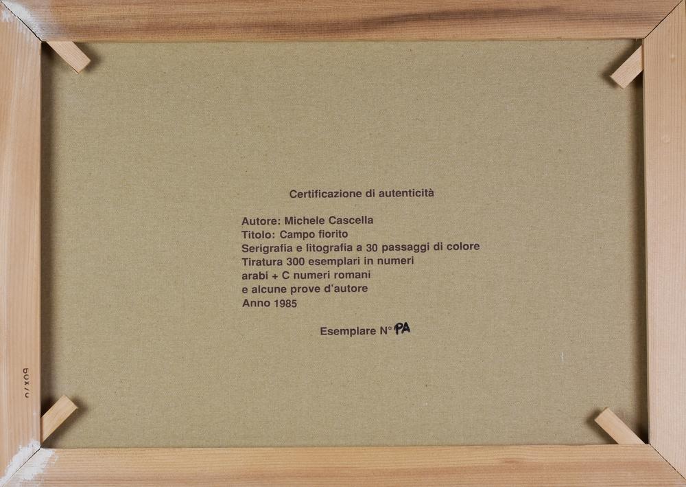 Michele Cascella CAMPO FIORITO serigrafia a colori su tela, cm 50x70 esemplare P.A. sul fronte: firma eseguito nel 1985