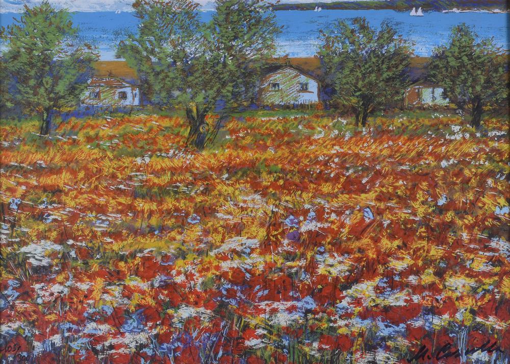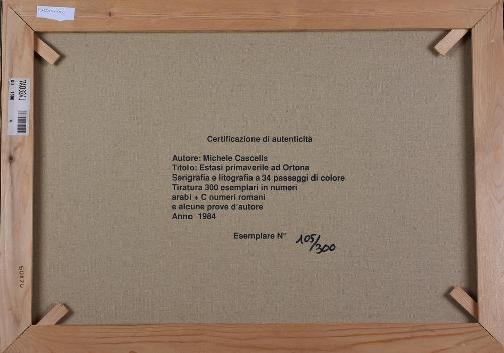 Michele Cascella ESTASI PRIMAVERILE AD ORTONA serigrafia a colori su tela, cm 50x70 esemplare 105/300 sul fronte: firma eseguito nel 1984