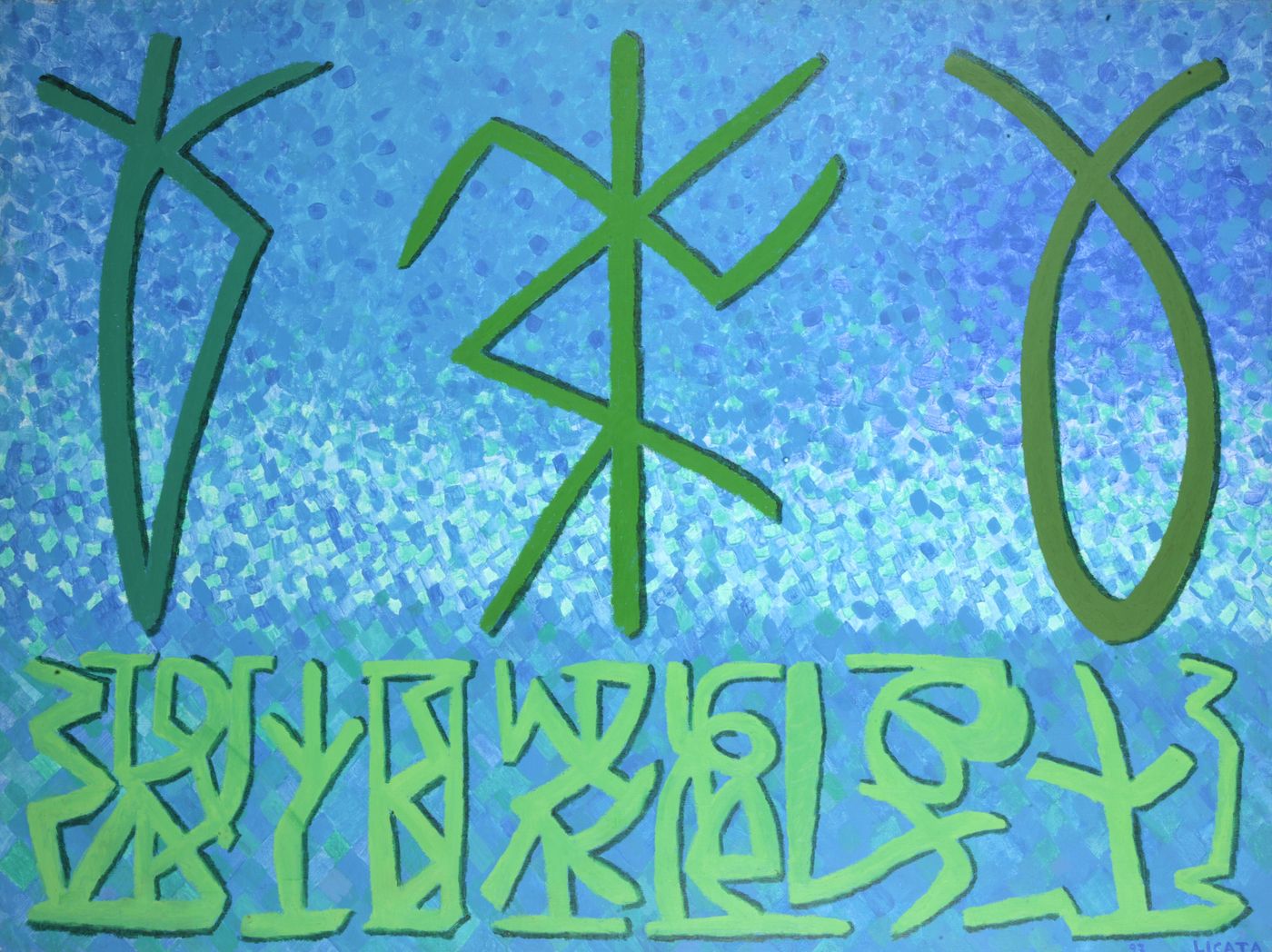 LICATA RICCARDO Torino 1929 "Amor ligante" 1997 150x200 olio e acrilico su tela Opera firmata e datata in basso a destra Autentica dell'artista su fotografia, con dedica ad personam, rilasciata in data 7 maggio 2001 Bibl.: R. Licata, "Dall'amor pungente all'amor di gloria", Milano, pubbl a colori a pag. 42