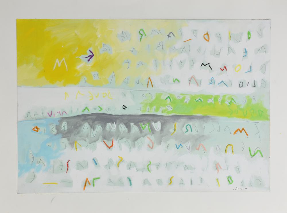 Renzo Nucara SENZA TITOLO tecnica mista su cartoncino, cm 39,5x60 sul fronte:...