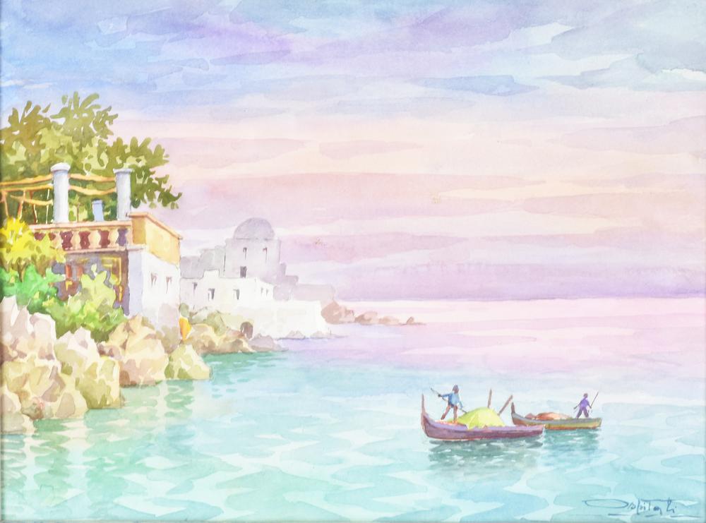 Giovanni Ospitali MARE EGEO acquarello su carta, cm 30x40 sul fronte: firma