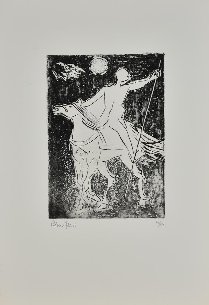 Rina Ferri CAVALLO E CAVALIERE acquaforte, foglio cm 50x35 firmato e numerato...