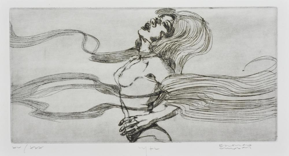 Enrico Villani UNA VOGLIA DI VENTO incisione su carta, cm 34x40 (lastra cm 16x31,5) esemplare XV/XXX sul fronte: firma