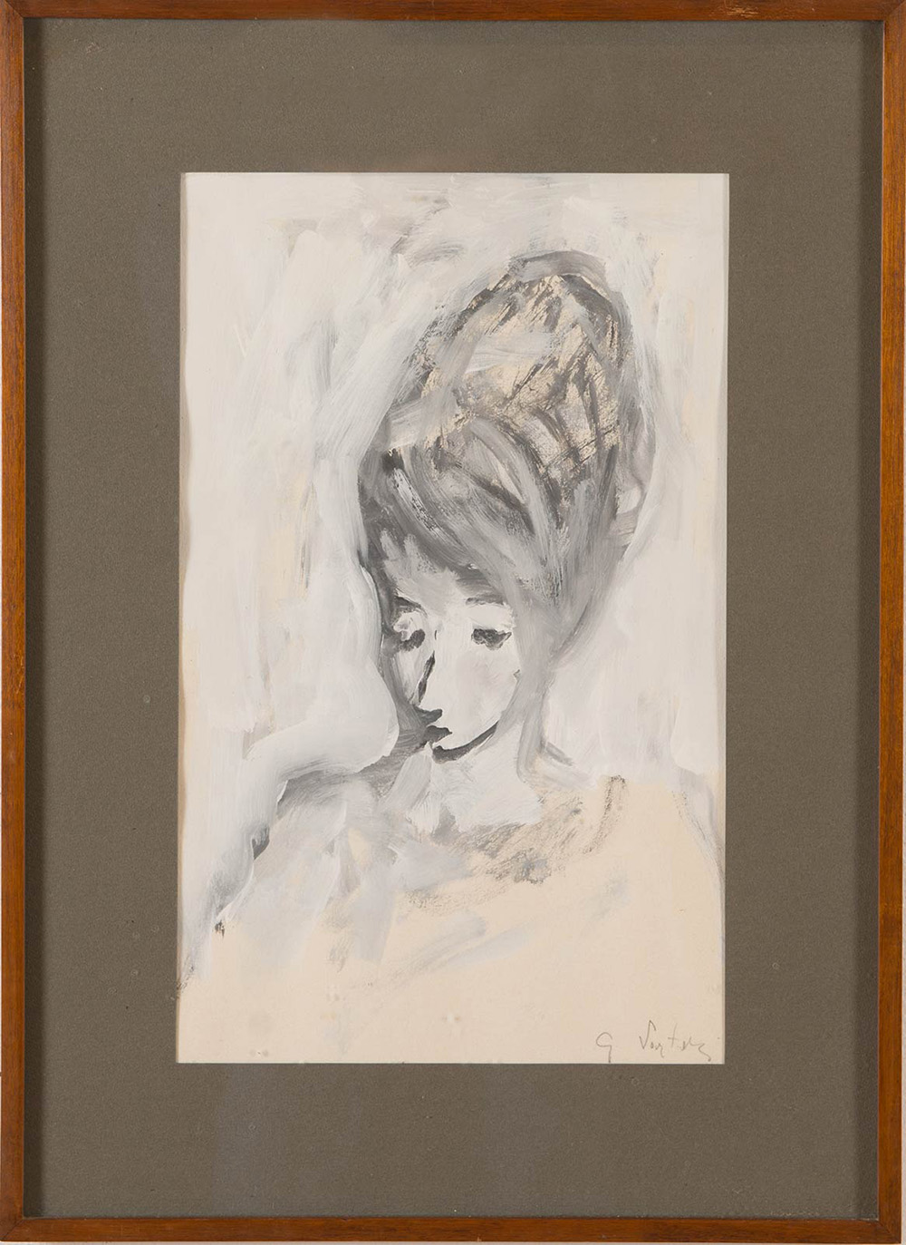Germano Sartelli (Imola 1925 – 2014), “Volto”. Tecnica mista su carta, firmato in basso a destra G Sartelli, H cm 38.5x24