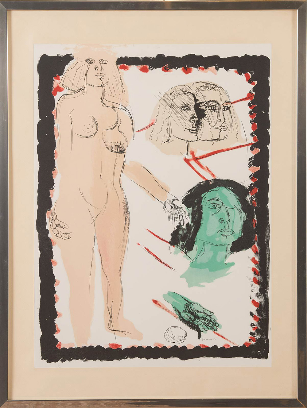Bruno Cassinari (Piacenza 1912 – Milano 1992), “Senza titolo”. Litografia a colori su carta, firmata in basso a sinistra Cassinari, numeri di tiratura in basso a sinistra 29/99, reca timbro a secco in basso a destra, H cm 67x49.5
