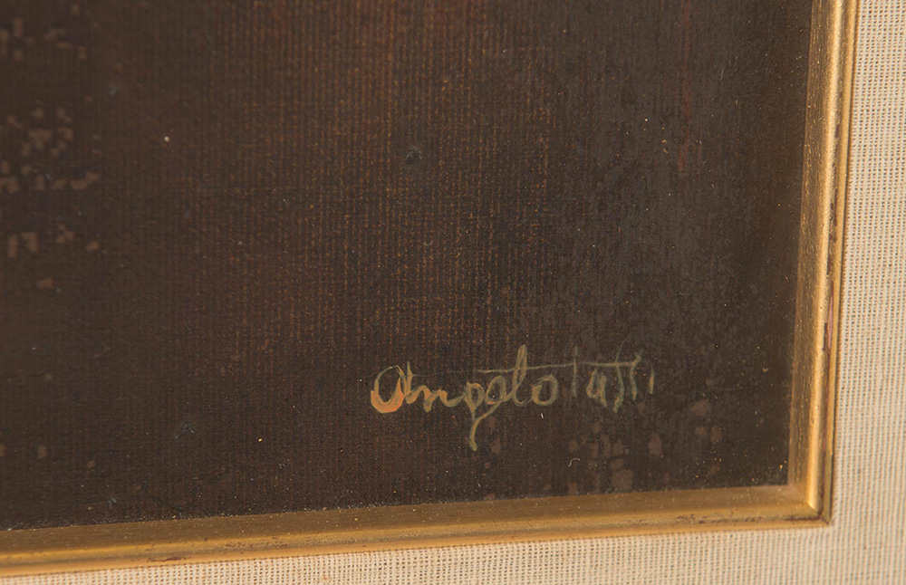 Angelo Tassi (Bologna 1937), “Personaggi”. Olio su cartone telato, firmato in basso a destra Angelo Tassi, H cm 50x35