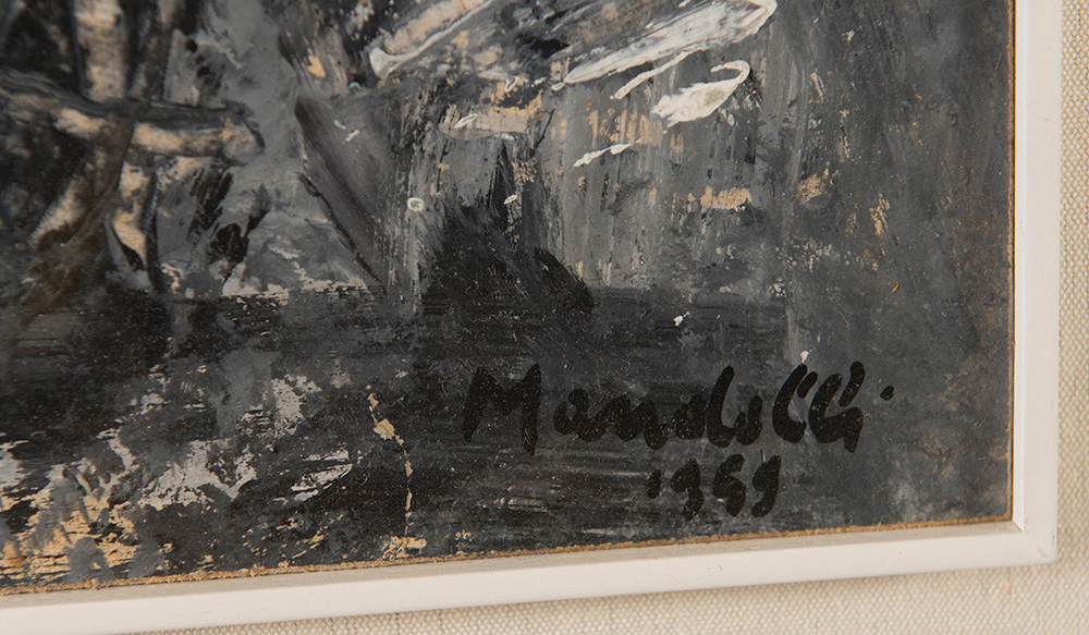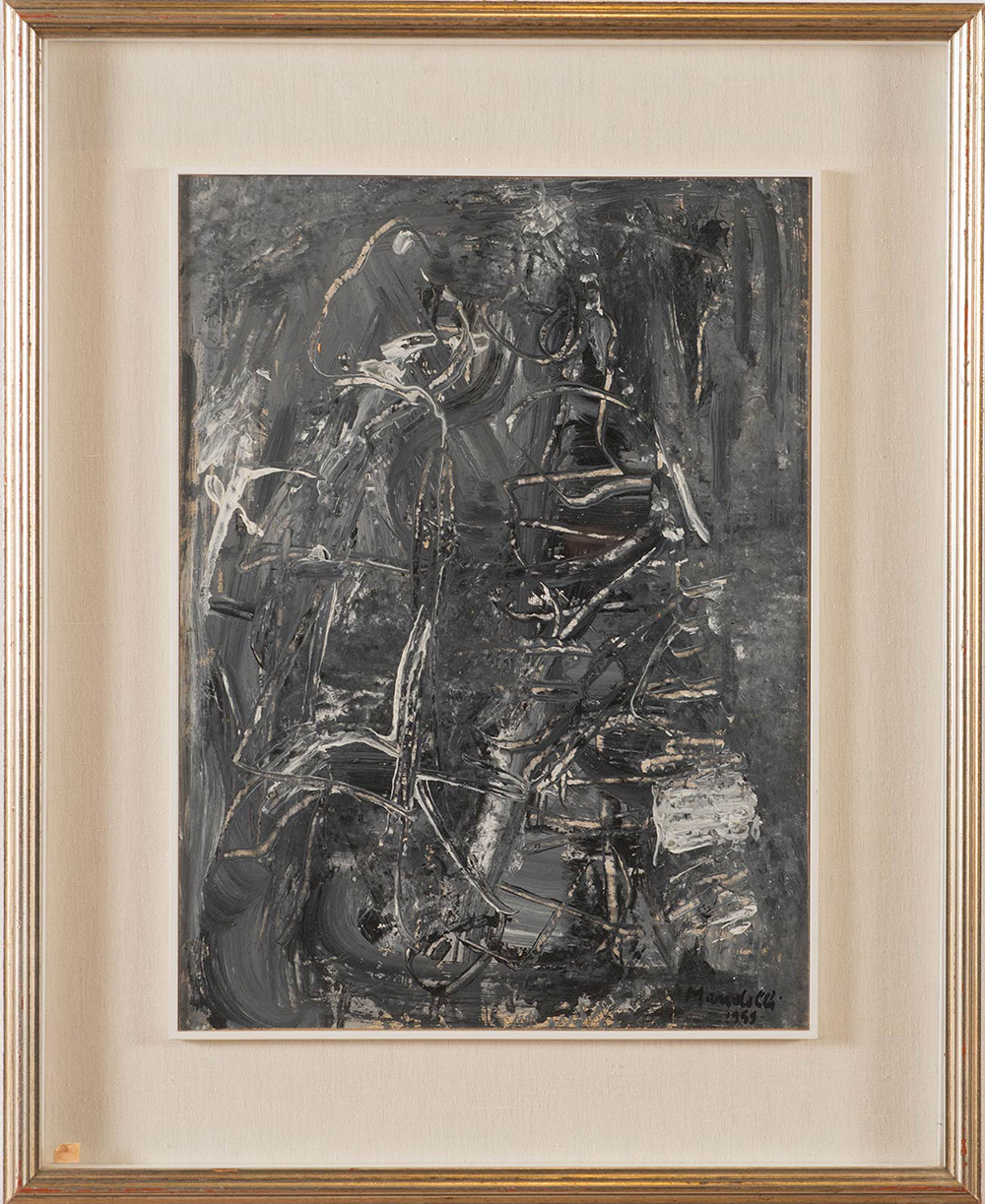 Pompilio Mandelli (Luzzara 1912 – Bologna 2006), “Informale”, 1959. Olio su carta, firmato e datato in basso a destra Mandelli 1959, H cm 41.5x31