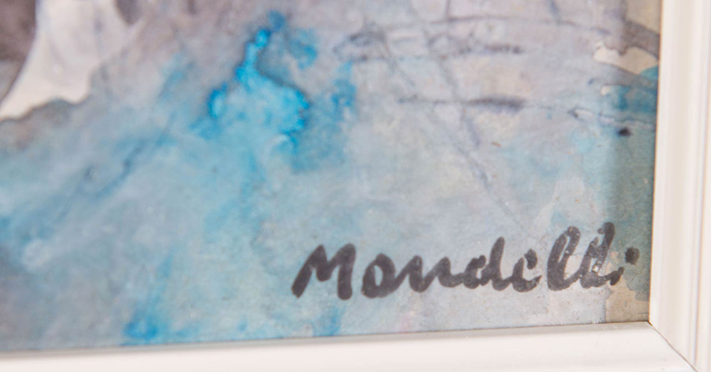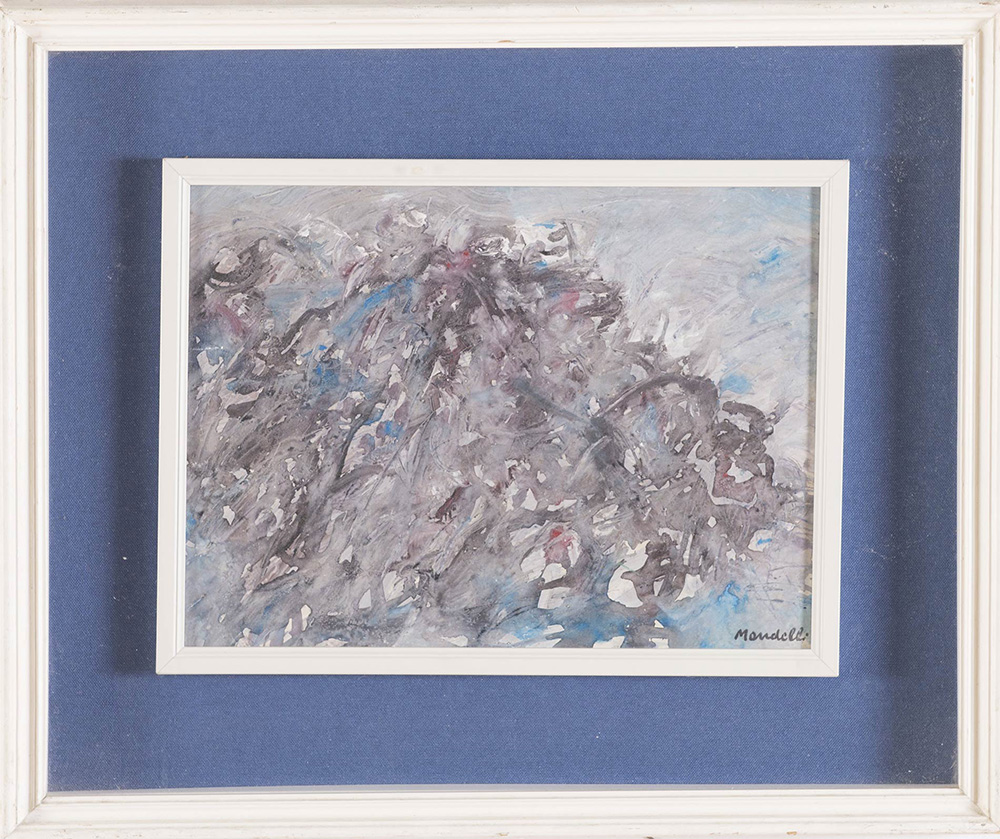 Pompilio Mandelli (Luzzara 1912 – Bologna 2006), “Scogliera”, 1980. Acrilico su carta, firmato in basso a destra Mandelli, al retro firmato Pompilio Mandelli e titolato Scogliera 1980, H cm 26.5x25.5