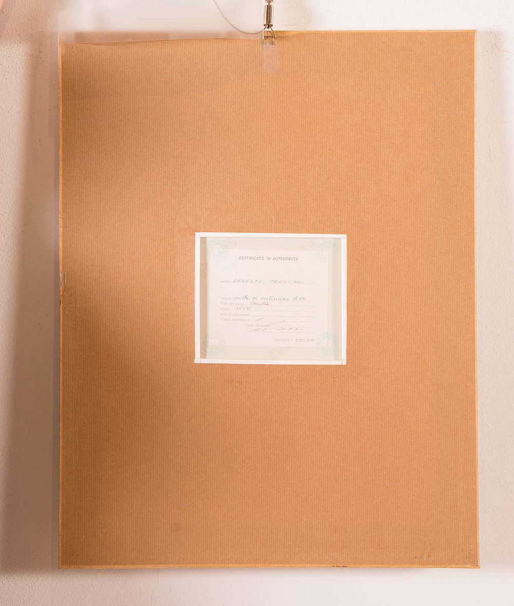 Ernesto Treccani (Milano 1920 – 2009), “Camilla”. Tecnica mista su cartoncino BKM, firmata in basso al centro Treccani, H cm 35x25 Al retro reca etichetta per autentica. Opera accompagnata da certificato di autenticità su fotografia a firma Treccani.