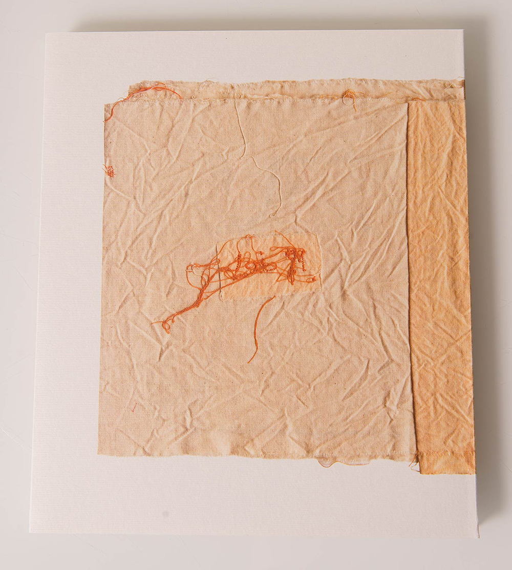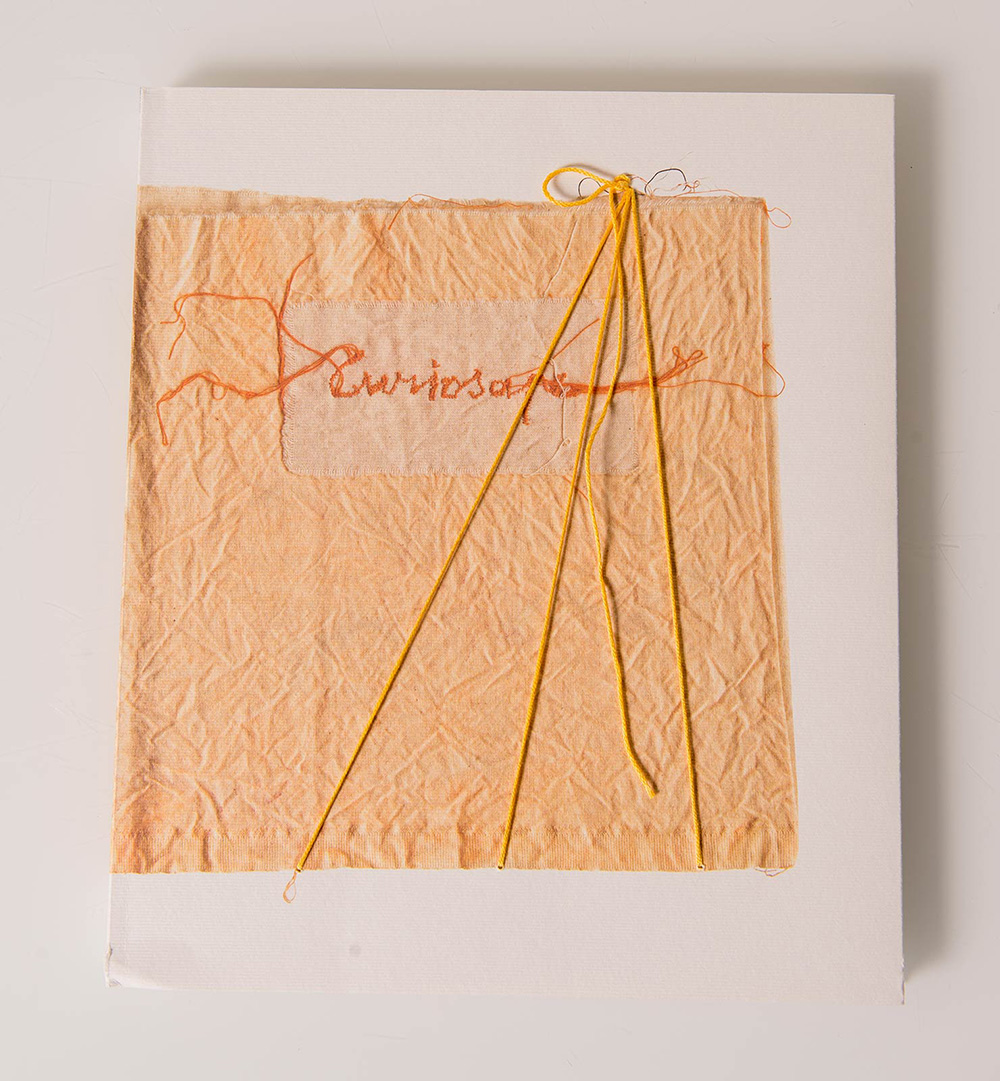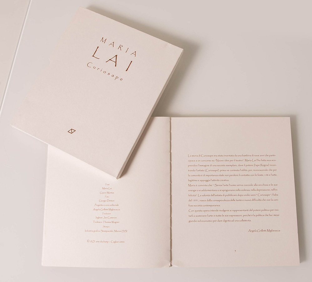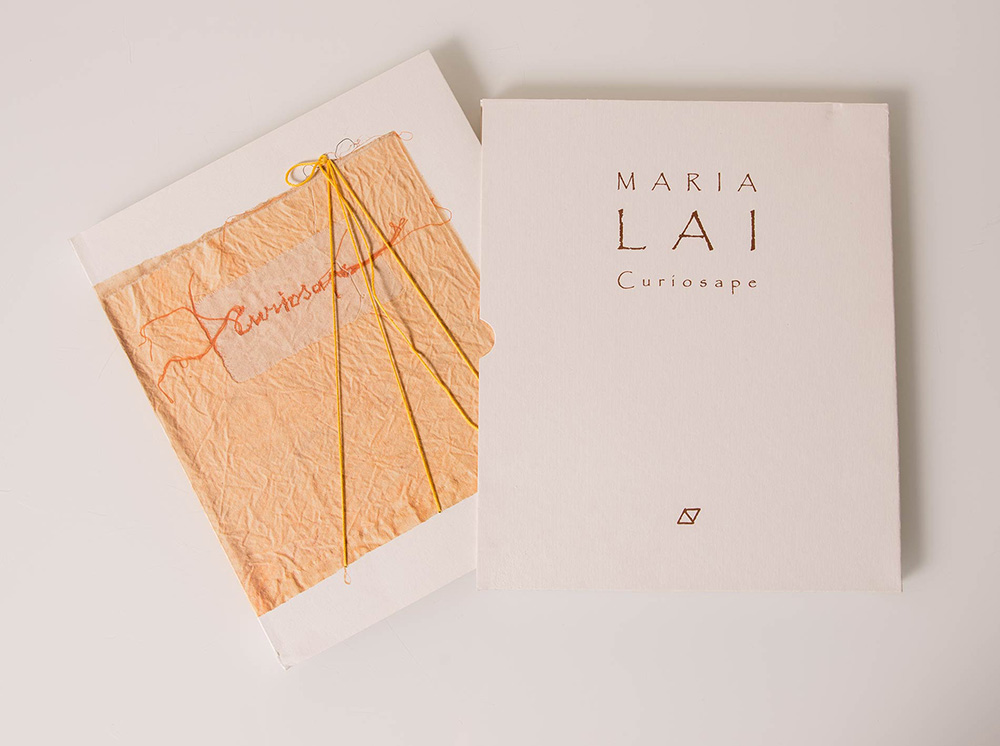 Maria Lai (Ulassai 1919 – Cardedu 2013), “Curiosape”. Applicazione di fili di cotone sulla copertina del libro ‘Maria Lai, Curiosape’, testo di Maria Lai & Gianni Murtas, Ed. Arte Duchamp Cagliari, H cm 28x24x1.5